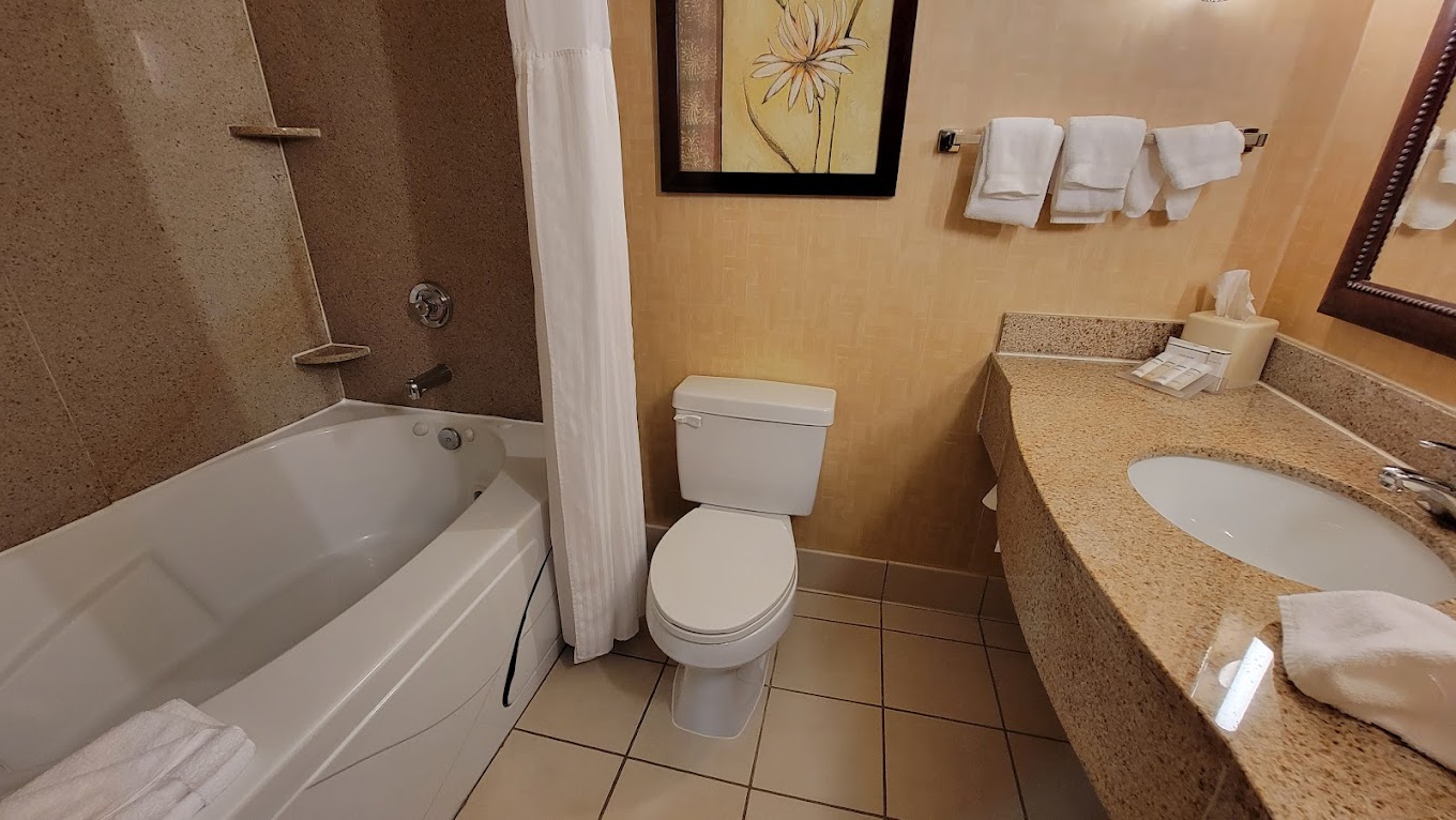 Great location and really nice hotel! Room and facility was very clean and kept! Nice and quiet atmosphere. Staff was extremely nice and friendly at the desk. Stayed one nice but it was great! Large eating area for breakfast. They have a really nice size pool and a large fitness room. Multiple outdoor locations and a large conference room. Many charging stations for Tesla and other EV’s as well in back.