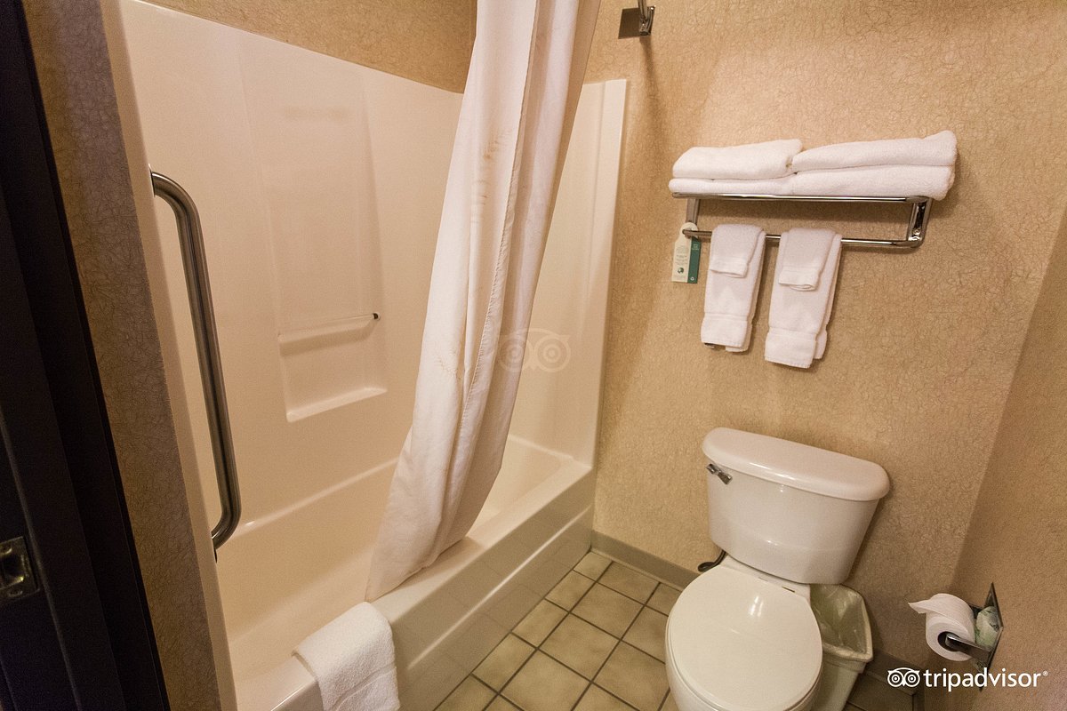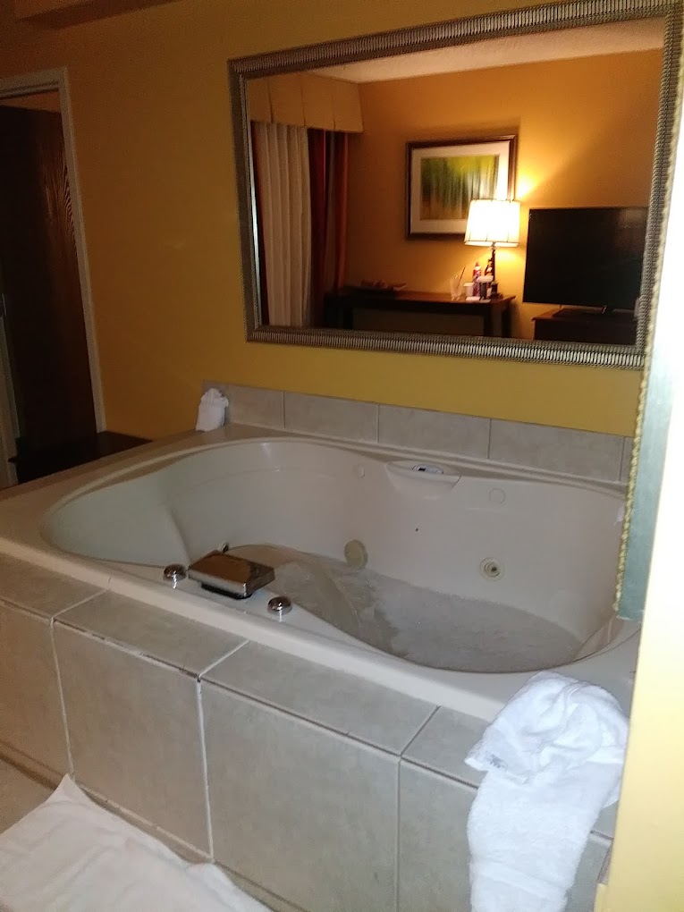 Upon our arrival… NO pool, NO hot tub, NO ice machines, NO elevator (out of order!). The front desk was very polite and helpful. The carpet *throughout* desperately needs either thoroughly cleaned or replaced – seriously disgusting.