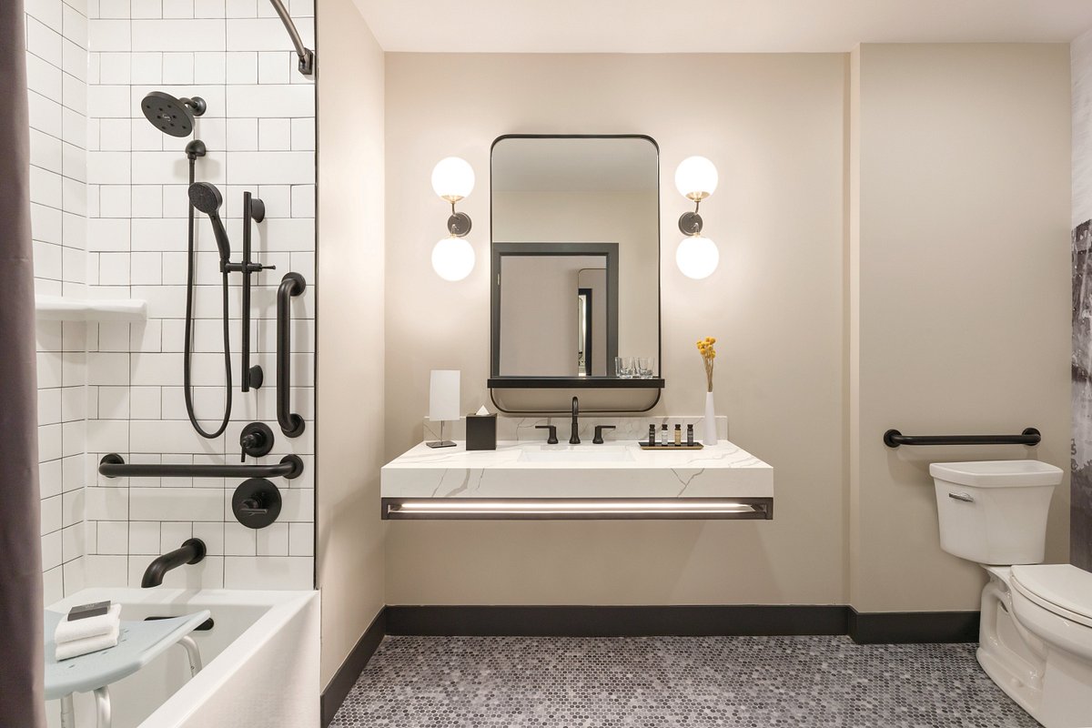 Chic getaway featuring private hot tubs, a rooftop lounge, craft brews, and close to downtown Golden.