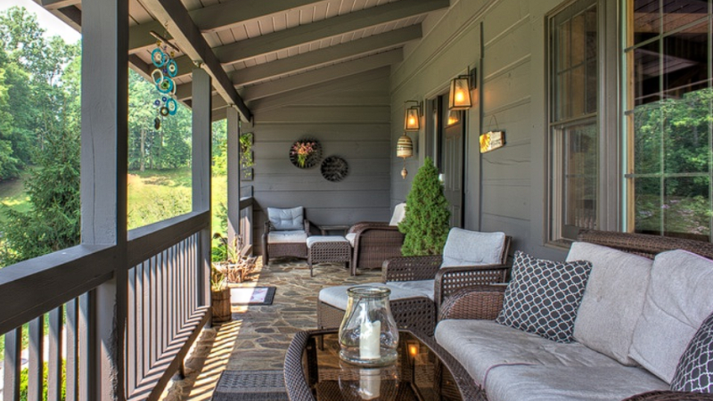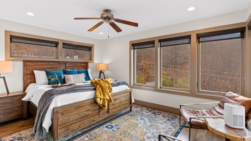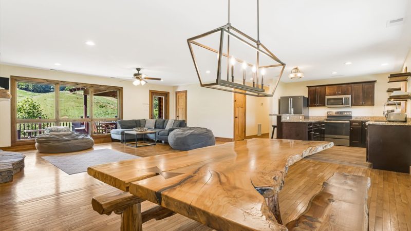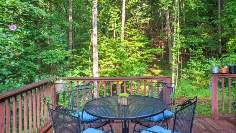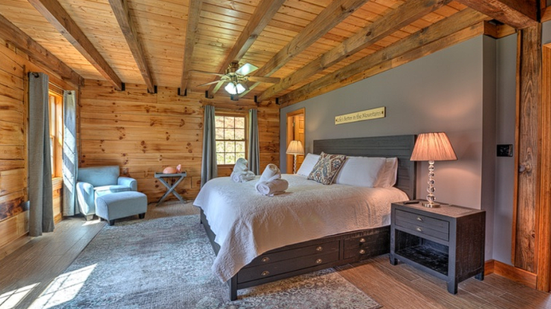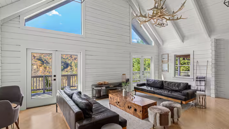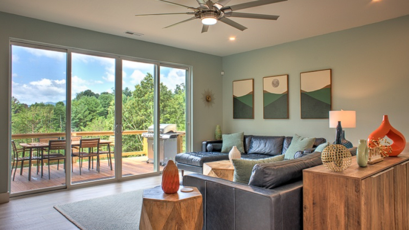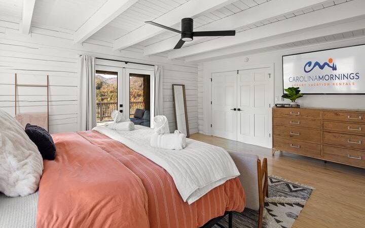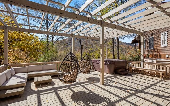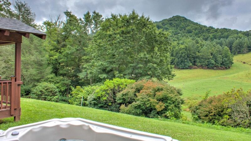 Experience a serene Blue Ridge getaway with a jacuzzi, stylish decor, and peaceful mountain views in NC.