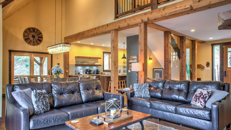 Ideal dual-lodge getaway featuring a spa, fireplace, kitchens, outdoor seating, and modern comforts.