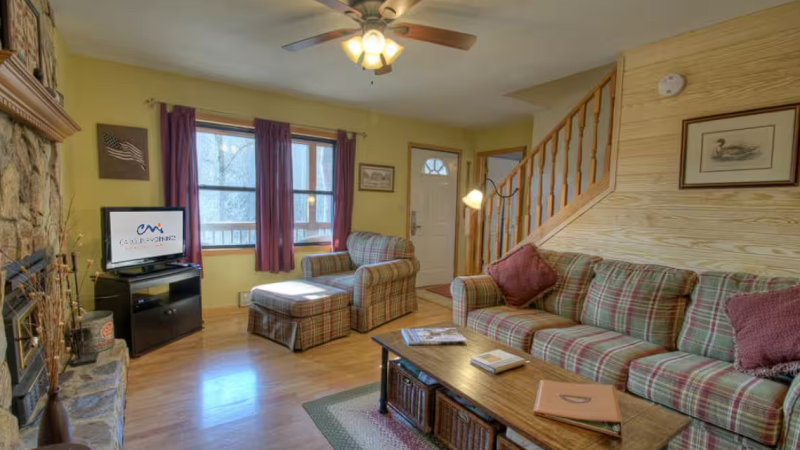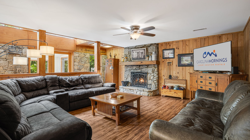 Enjoy a cozy mountain retreat featuring a complete kitchen, stone hearth, and a private outdoor jacuzzi near the Blue Ridge Parkway.