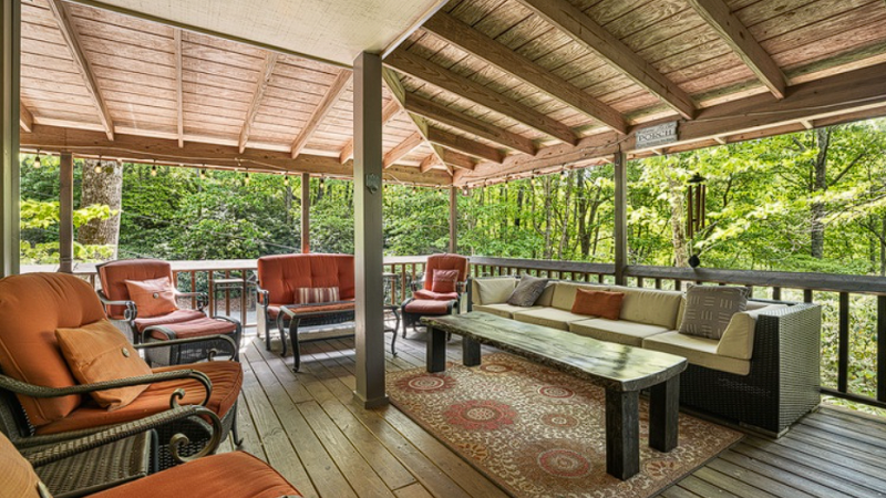 Discover your personal retreat in the Blue Ridge Mountains, featuring a jacuzzi, sauna, and ample porches in Asheville.
