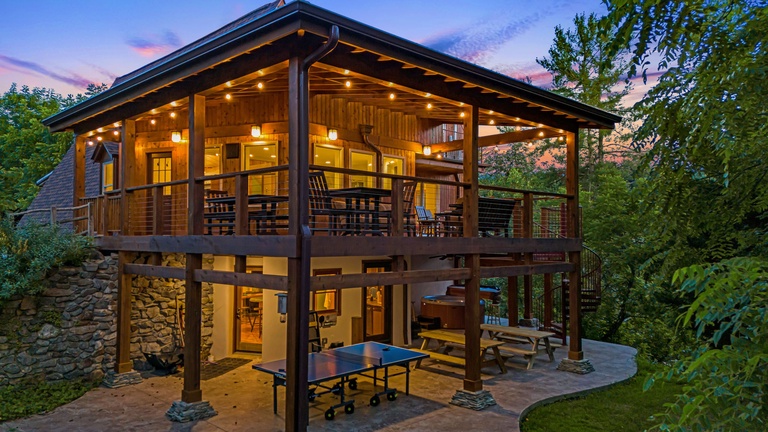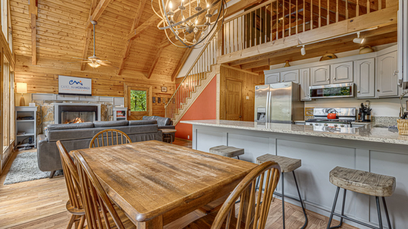 Experience a luxurious romantic cabin featuring a jacuzzi, home theater, fireplaces, and a gourmet kitchen perched on Slickrock Mountain at 5,000 feet.