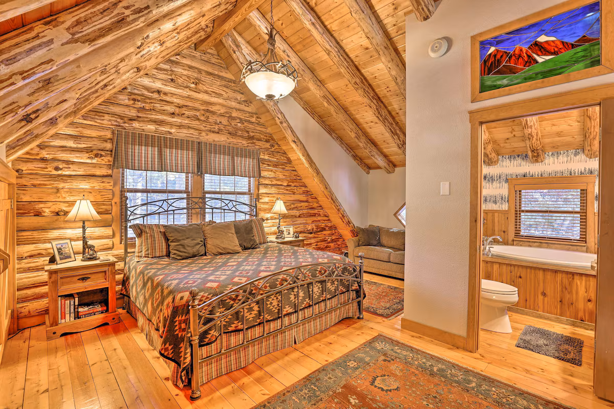 4. Cozy and Intimate Atmosphere: Cuddle up with your partner by the fireplace, creating a cozy and romantic atmosphere. Take advantage of the intimate spaces within the cabin, from comfortable seating areas to charming bedrooms, enhancing your romantic experience.