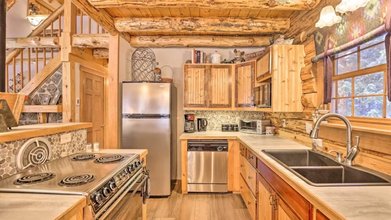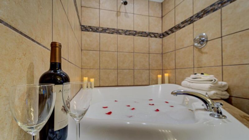 7. Culinary Delights: Take advantage of the cabin’s well-equipped kitchen to cook romantic meals together. Indulge in candlelit dinners or enjoy a glass of wine under the stars while soaking in the hot tub.