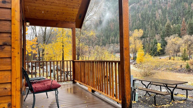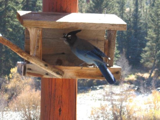 After a day of skiing at Wolf Creek, the hotel we had originally booked informed us that their hot tubs were broken! We did a search for nearby accomodations, and fortunately came across Riverbend Resort. They were super friendly on the phone, and had the Rainbow Cabin available. It was exactly the kind of place we enjoy – rustic, but cozy and welcoming. They have bird feeders set up, so it was fun to watch all the different birds coming to visit. They have a bird feeder set up on the porch of the cabin and provide bird seed so you cann feed them yourself if you want. The cabin even has an indoor fireplace! The hot tub was right around the corner so we could soak our sore selves, then ten steps took us inside for an evening by the fire. In the morning, the view of the river, with the birds enjoying their breakfast, was a absolute treat to wake up to. This will be our new South Fork go-to place to stay!