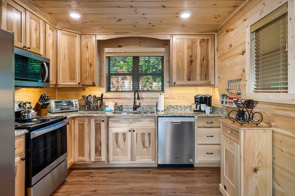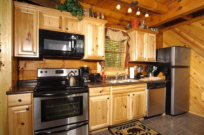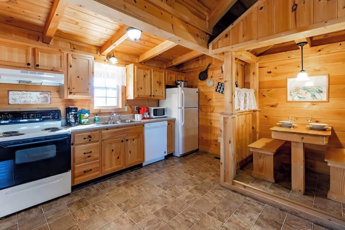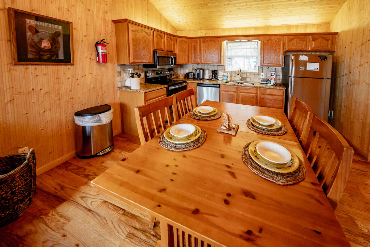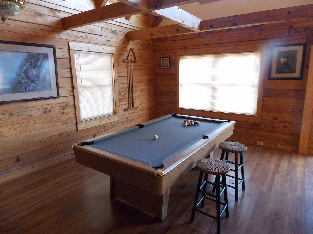 Peaceful cabin featuring a jacuzzi, pool table, fireplace, and kitchen near downtown Gatlinburg.