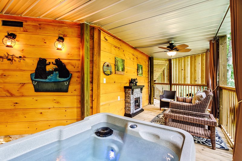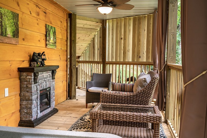 Exclusive getaway for couples featuring a private hot tub, game room, kitchen, and fireplace near Dollywood.