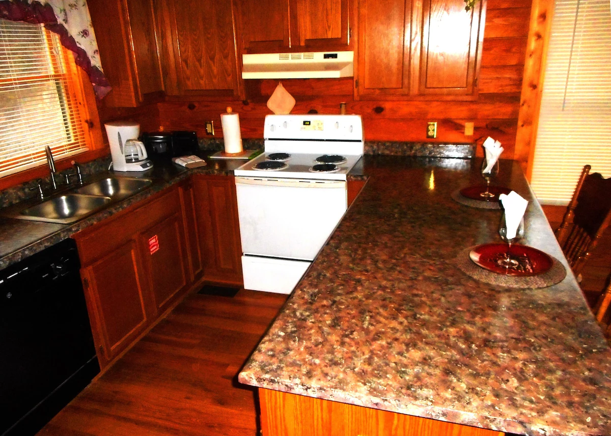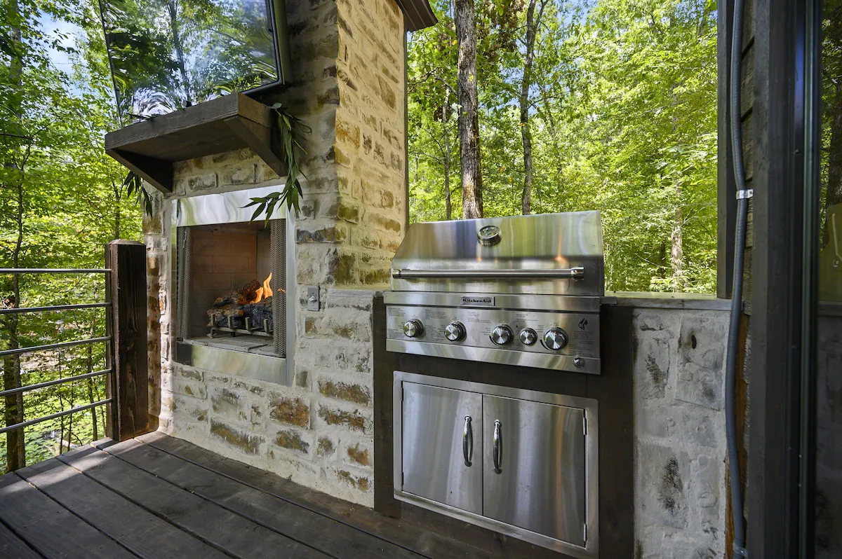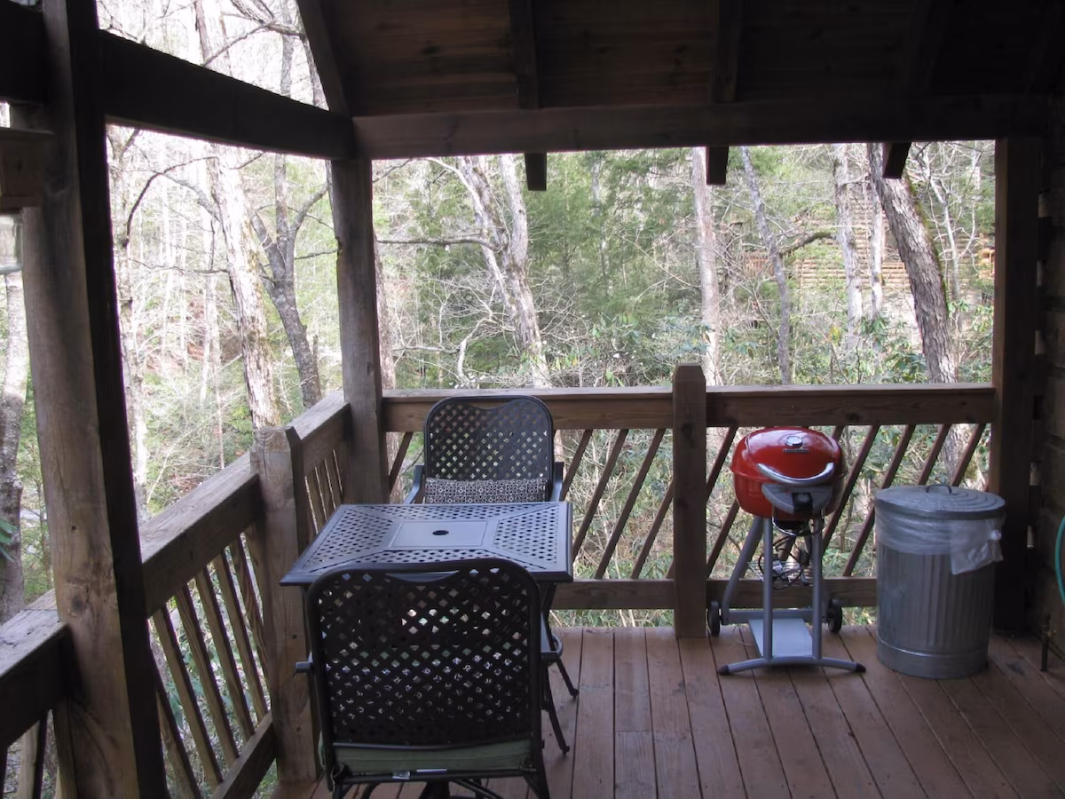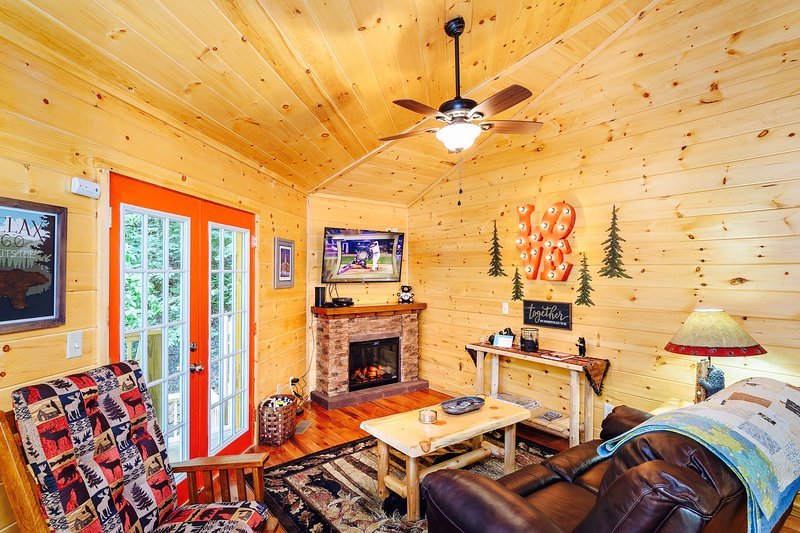 Enjoy a private retreat featuring a jacuzzi, gas fireplace, and a complete kitchen in the Smoky Mountains.