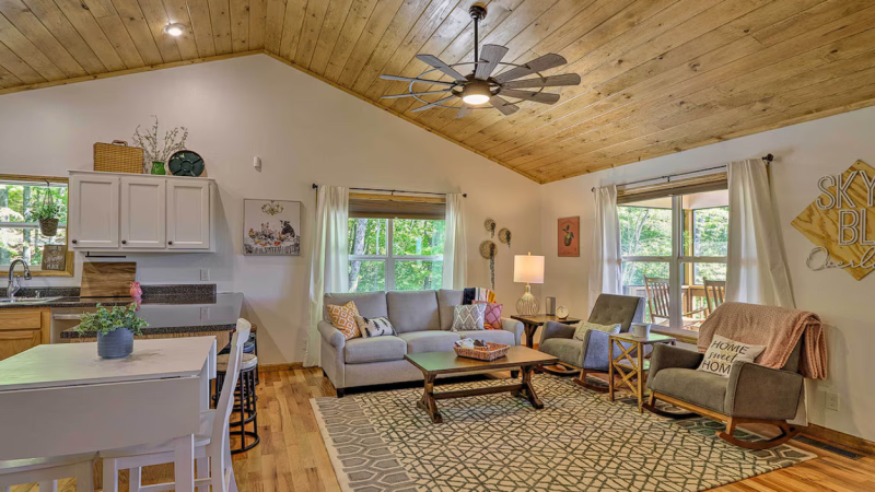 Most Budget-Friendly: Sky Blue Overlook– Affordable, warm comforts with a secluded jacuzzi.