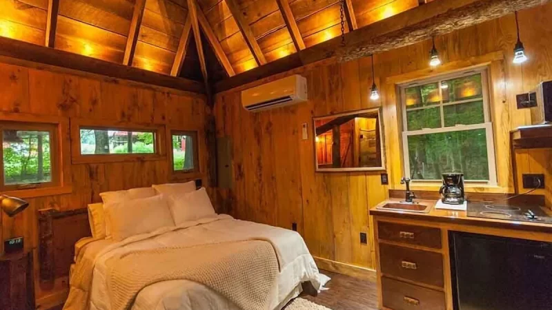 Best Overall:Forest Ridge Campground & Cabins– Ultra-luxury, exquisite comfort, first-rate amenities. ❤️ Best Romantic:Lewis’ Cottage– Personal spaces, warm hot tubs, and a charming aura. Most Budget-Friendly: Beaver Creek Farm Cabins– Cozy, yet attractive stays with a private spa bath.