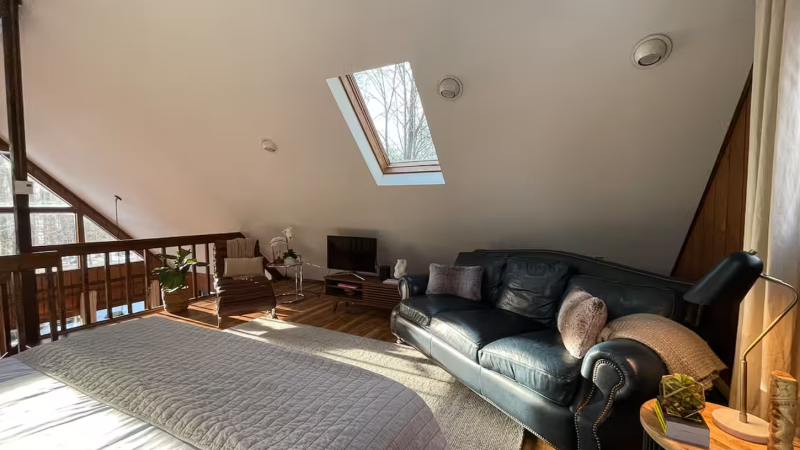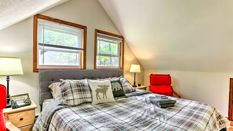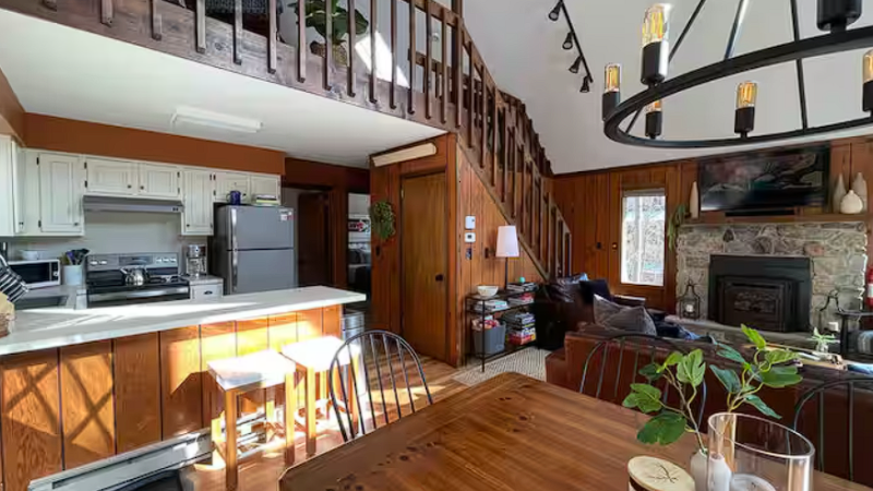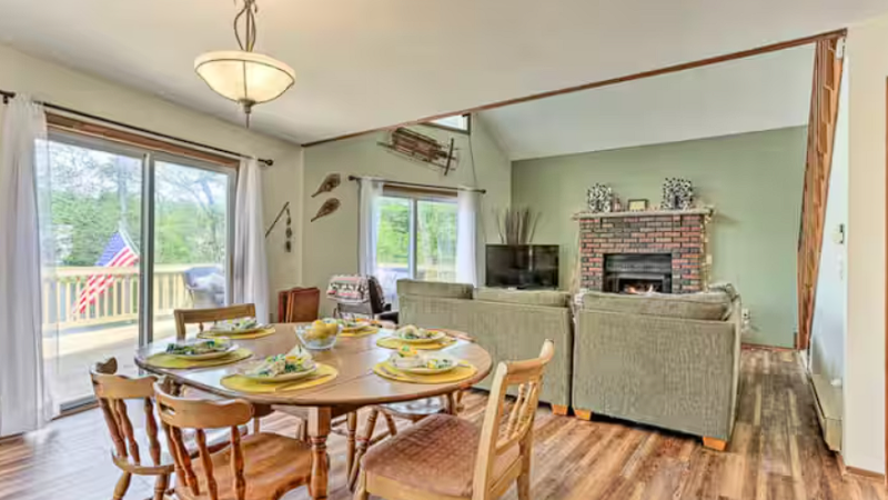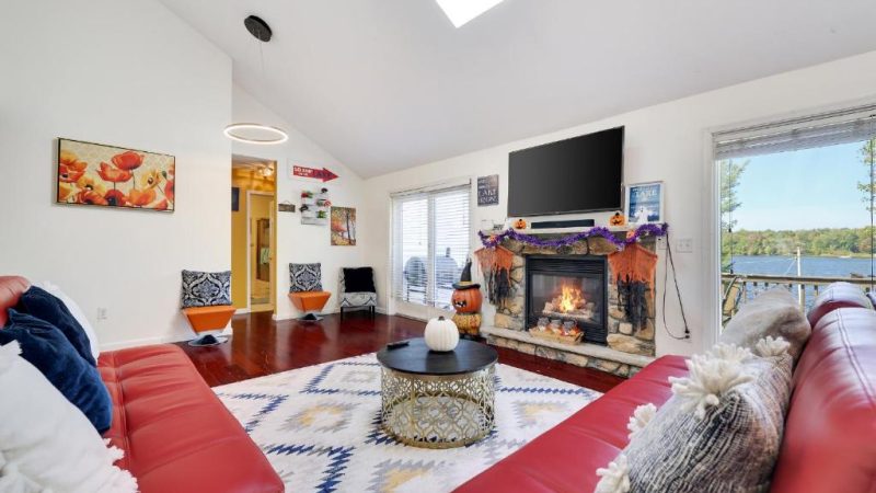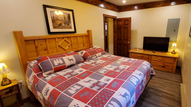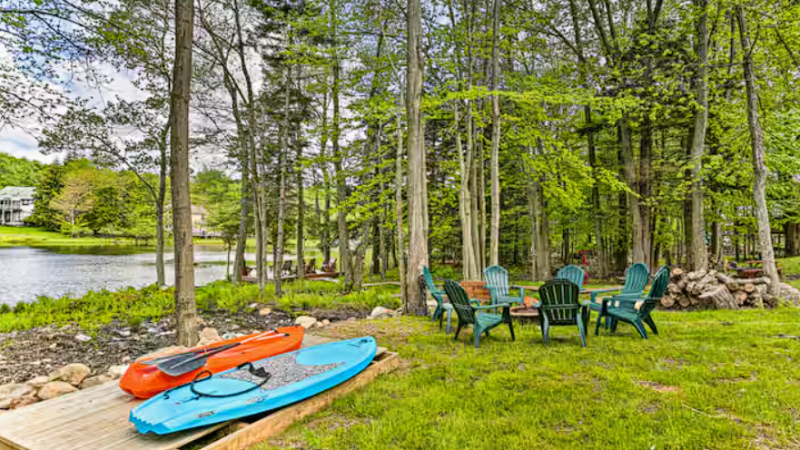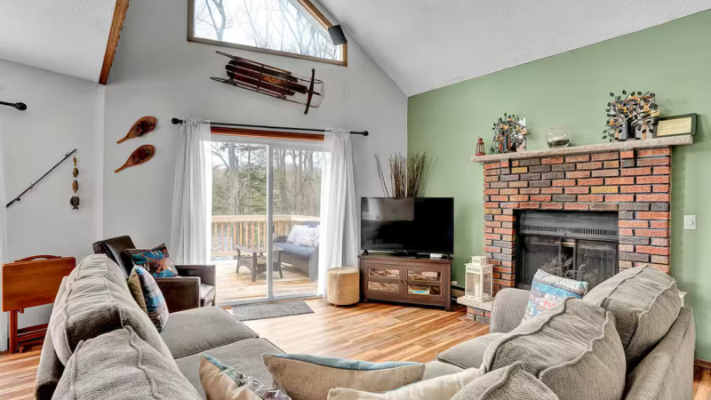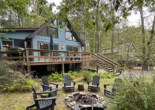 Couples will find a perfect getaway featuring a jacuzzi, three bedrooms, and a spacious Weber grill, close to Jack Frost Mountain and Great Wolf Lodge.