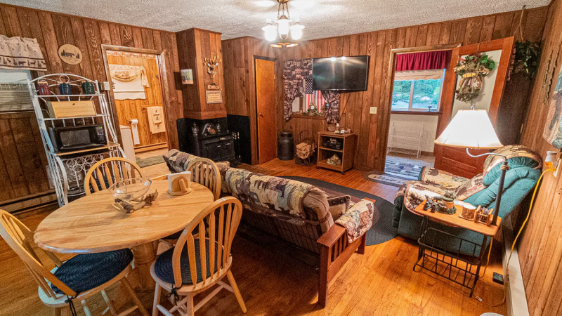 These are cabins, not luxury hotel rooms and are rated accordingly …… very clean, there’s kitchen utensils and appliances. Beds were very comfortable, and we got to enjoy a nice fire on a cool night. Quiet area, and you’ll see Amish carriages on the road. Great bakery nearby. We were allowed to bring our well behaved dogs. There are no TV’s ….. and steer graze on the next property.
