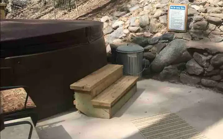 What are the guidelines or etiquette to keep in mind when enjoying a hot tub at a rental cabin in Ruidoso?