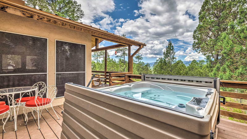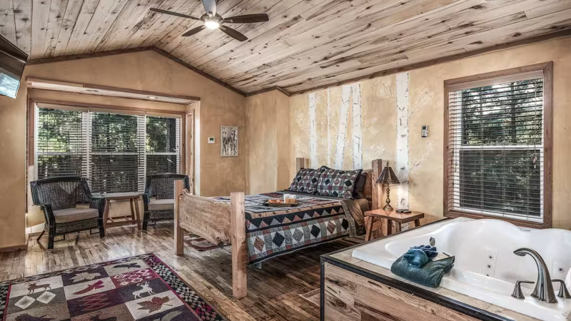 Most Budget-Friendly: Ruidoso Cabin– Cozy, yet attractive stays with a private spa bath.