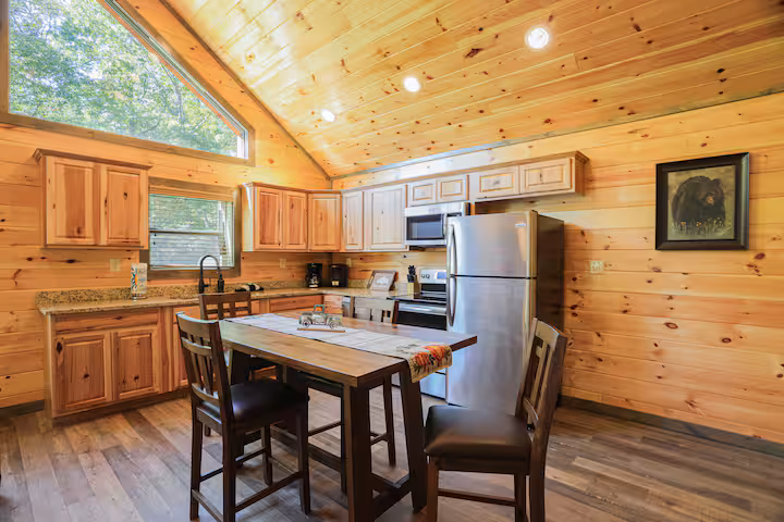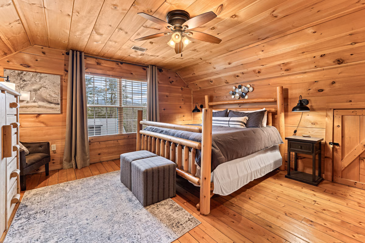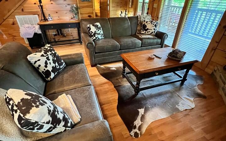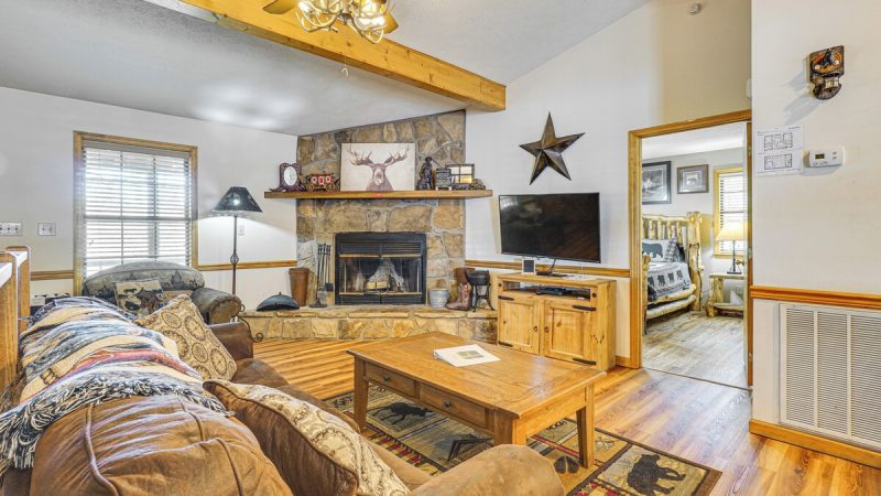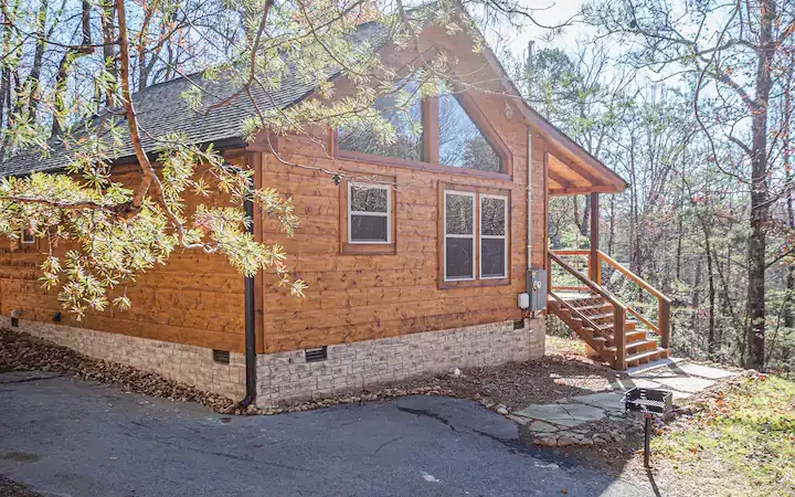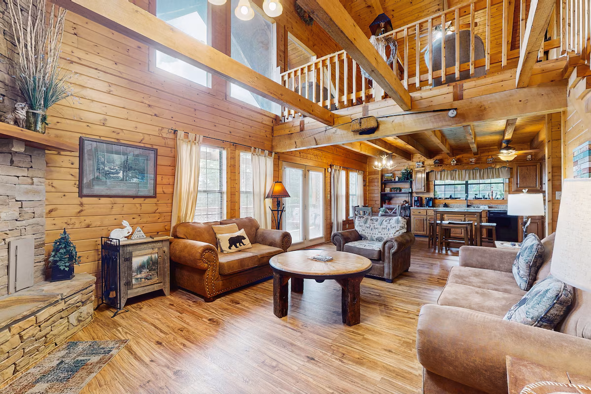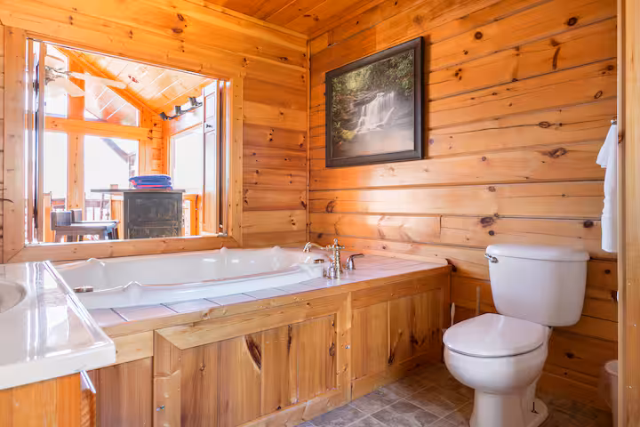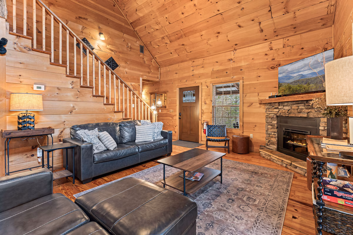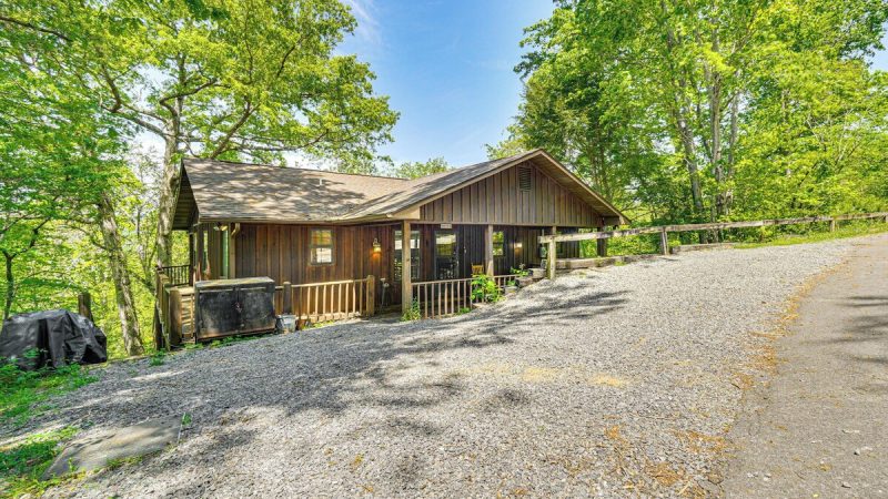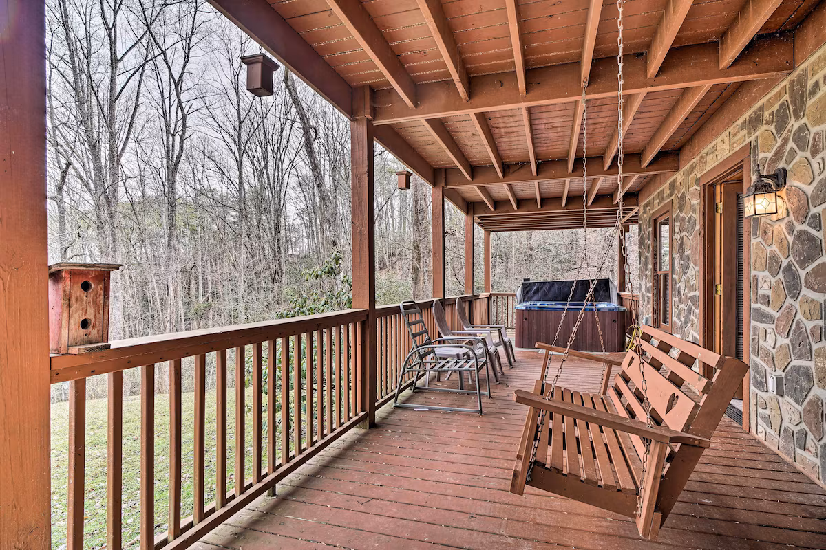 This charming cabin in Sevierville features a jacuzzi and a rustic yet luxurious vibe.