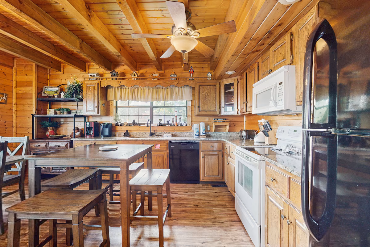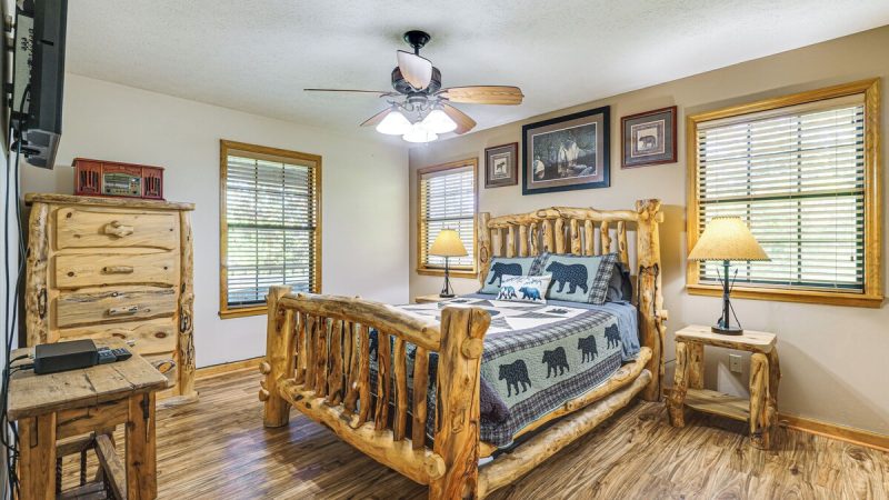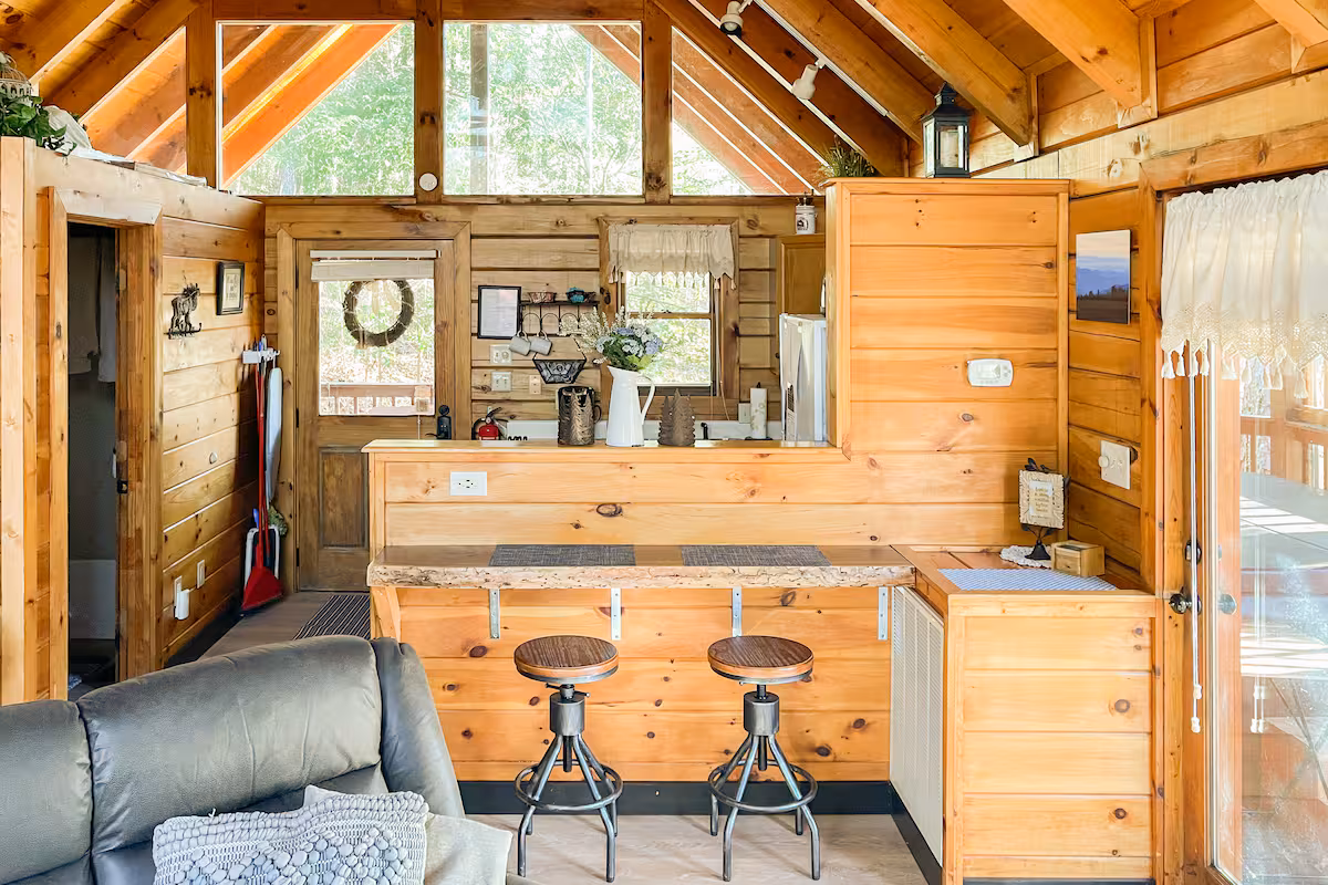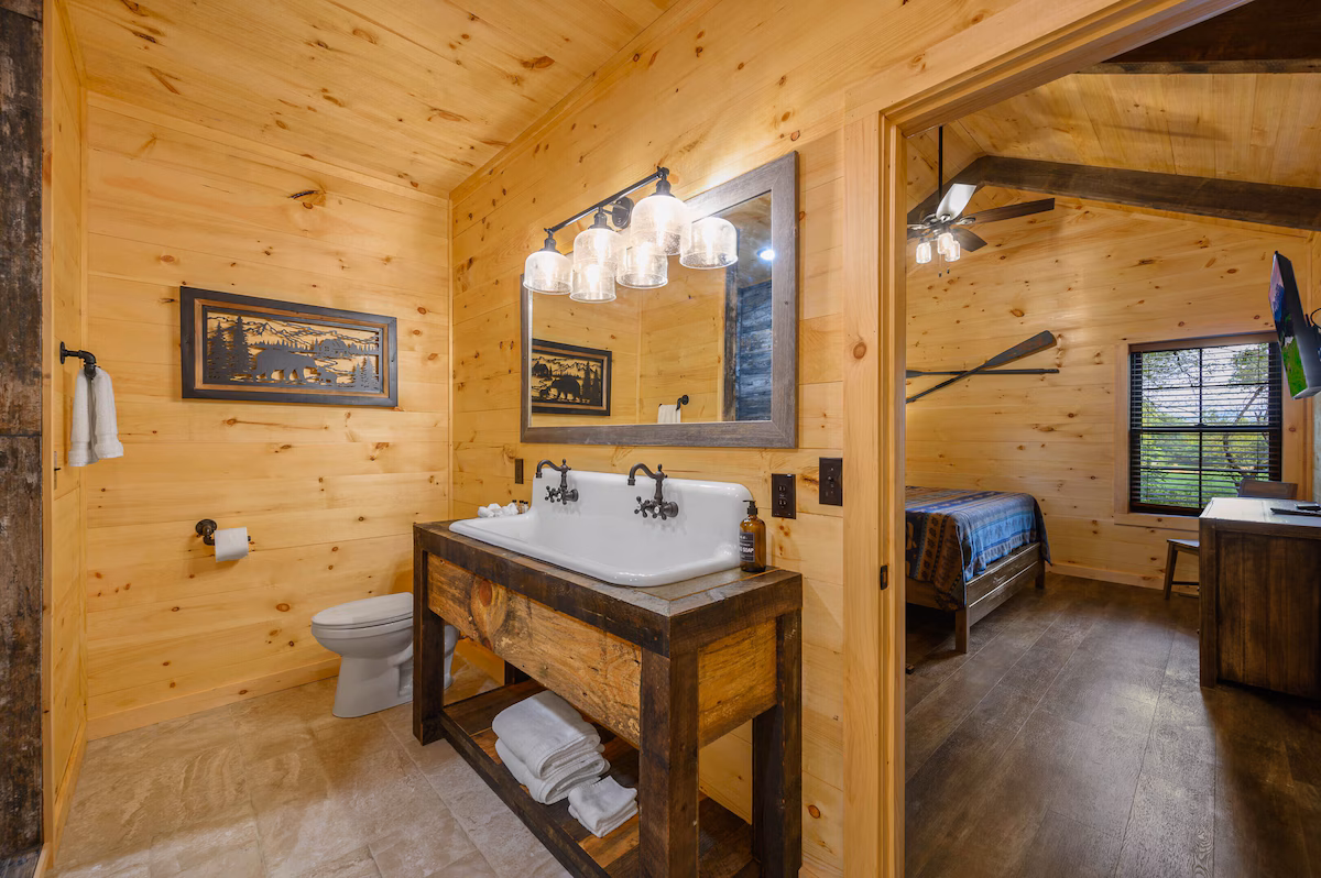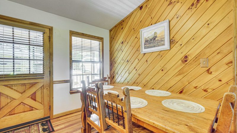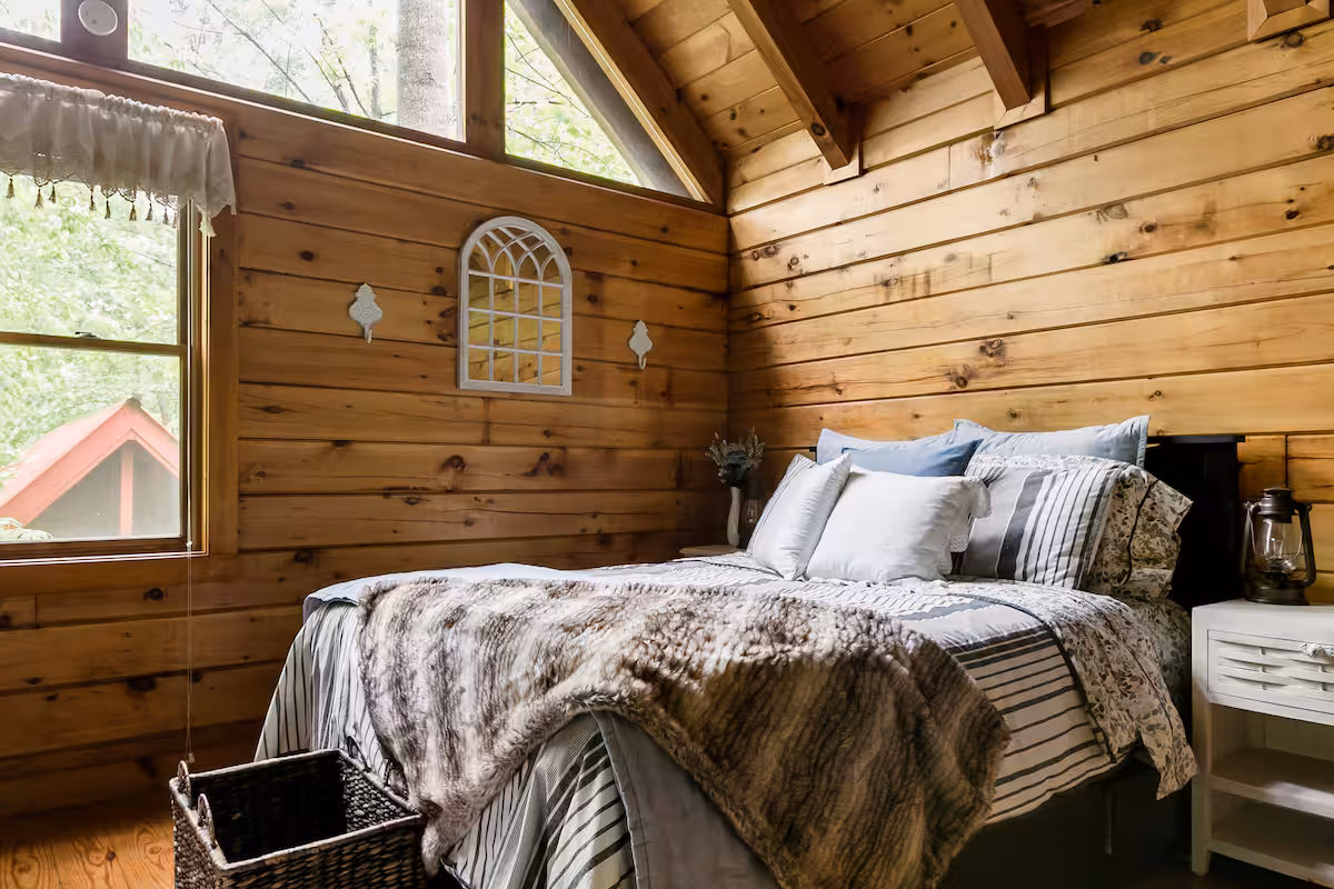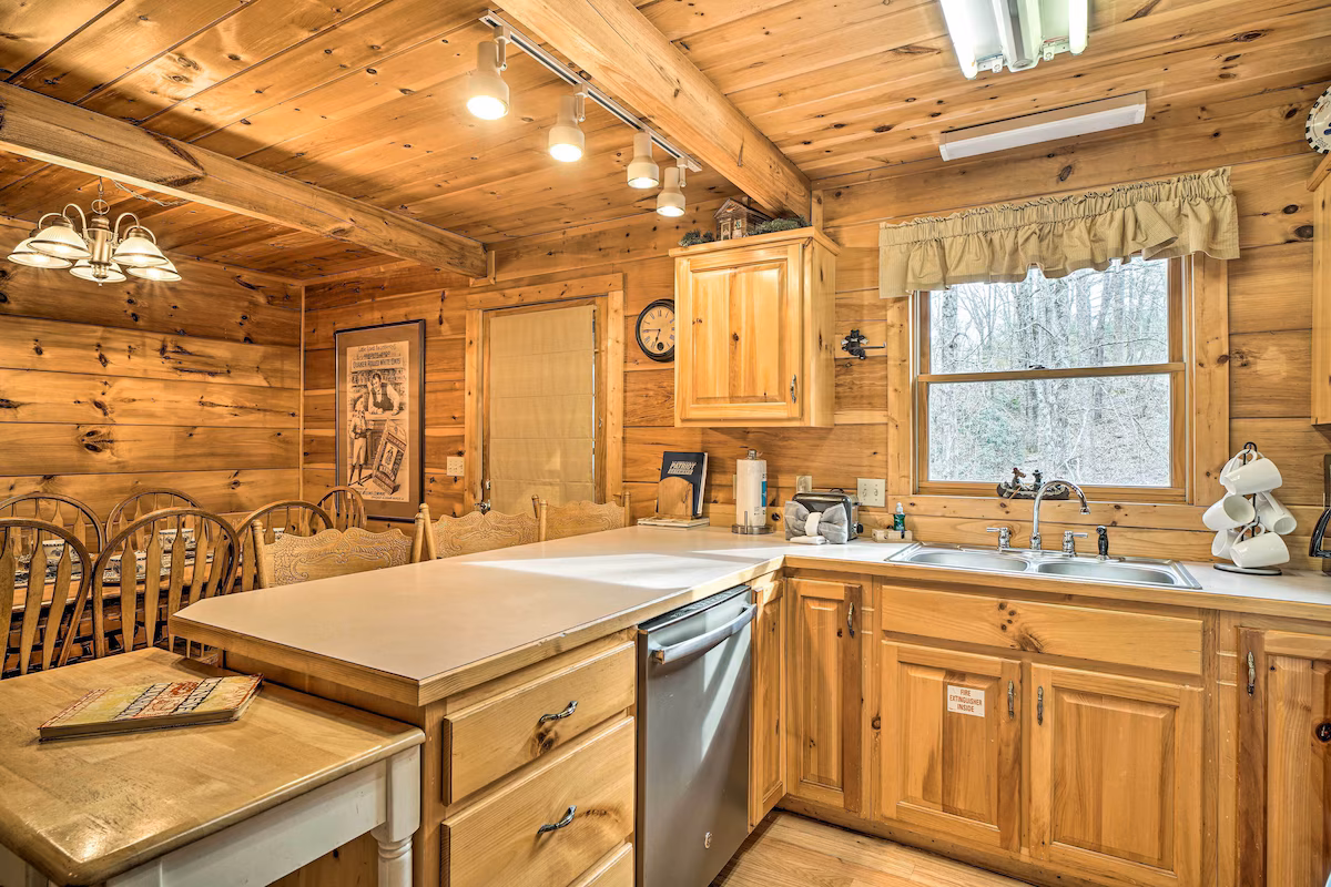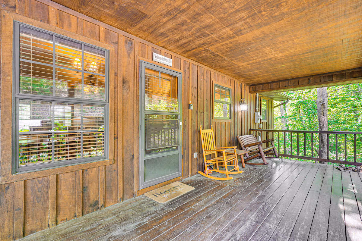 This charming cabin in Sevierville features a jacuzzi and a rustic yet luxurious vibe.