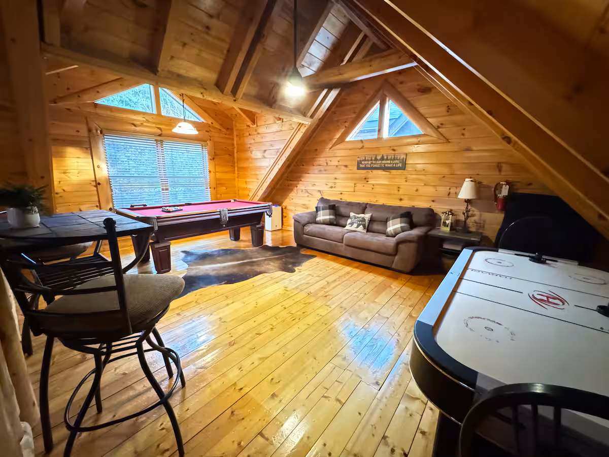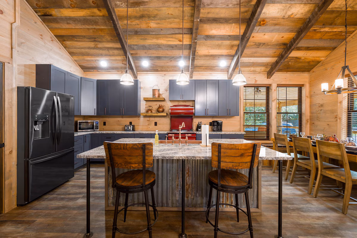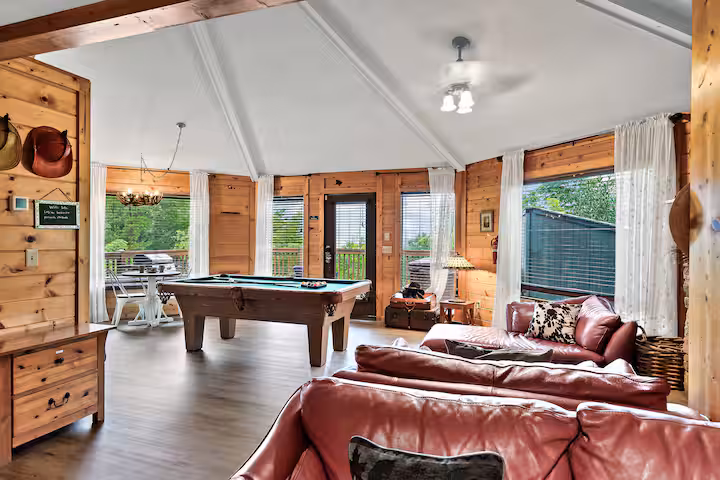 Rustic luxury blends with contemporary comforts, featuring a jacuzzi, fire pit, game room, and more.