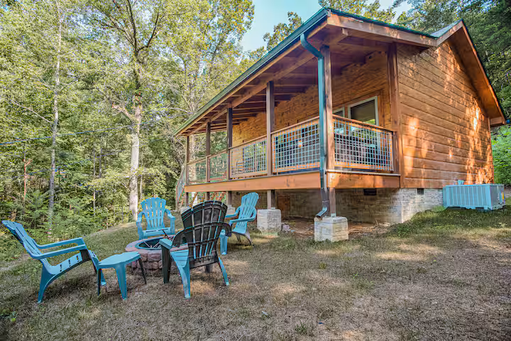These pet-friendly lodges feature a private jacuzzi and a well-stocked fishing pond by the Cherokee National Forest.