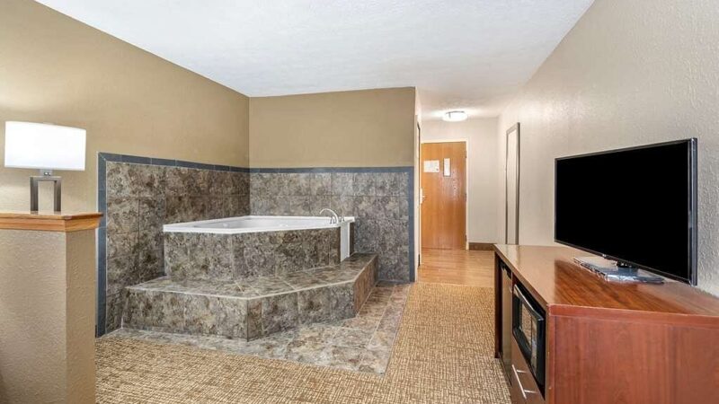The best affordable hotel with hot tub in room in Cincinnati is Quality Inn – West Chester. You can go through our full list of budget-friendly hotels with hot tub suites in Cincinnati.