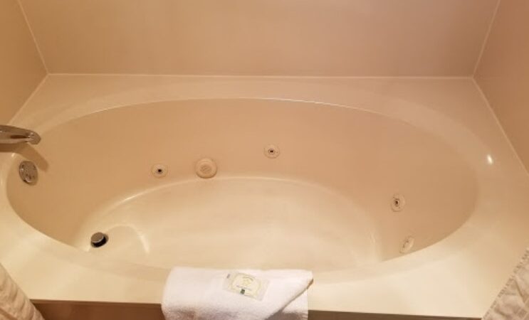 we initially went in and the lady at the front said that there was limited rooms available (our fault we didn’t make a reservation because we didn’t know what state we’d land in for the night). she was very kind and offered us two rooms and explained each. we chose the more expensive one because of the big tub. it was a little under 200 for the night and we were excited to take a nice bath after a long travel day. when we got into the room it was super spacious and the tub looked amazing. very big and lots of jets. however, the drain wouldn’t plug shut to hold the water so we had to go to the front and get a suction tool to hold the water in. was slightly disappointed that only 2/6 jets worked especially because we chose that room for the tub. overall the room was very very clean. my only minor complaints were the flickering lights and the air conditioner makes a squeaky noise that kept me up.