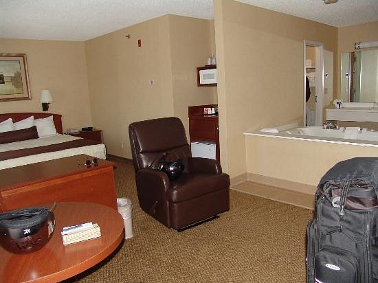 The room was big had an opening to the outside which is nice for carrying in your items and for pets. Pool was amazing for children water slides, and other fun water activites. Fun for adults too. Hot tub was nice and hot!