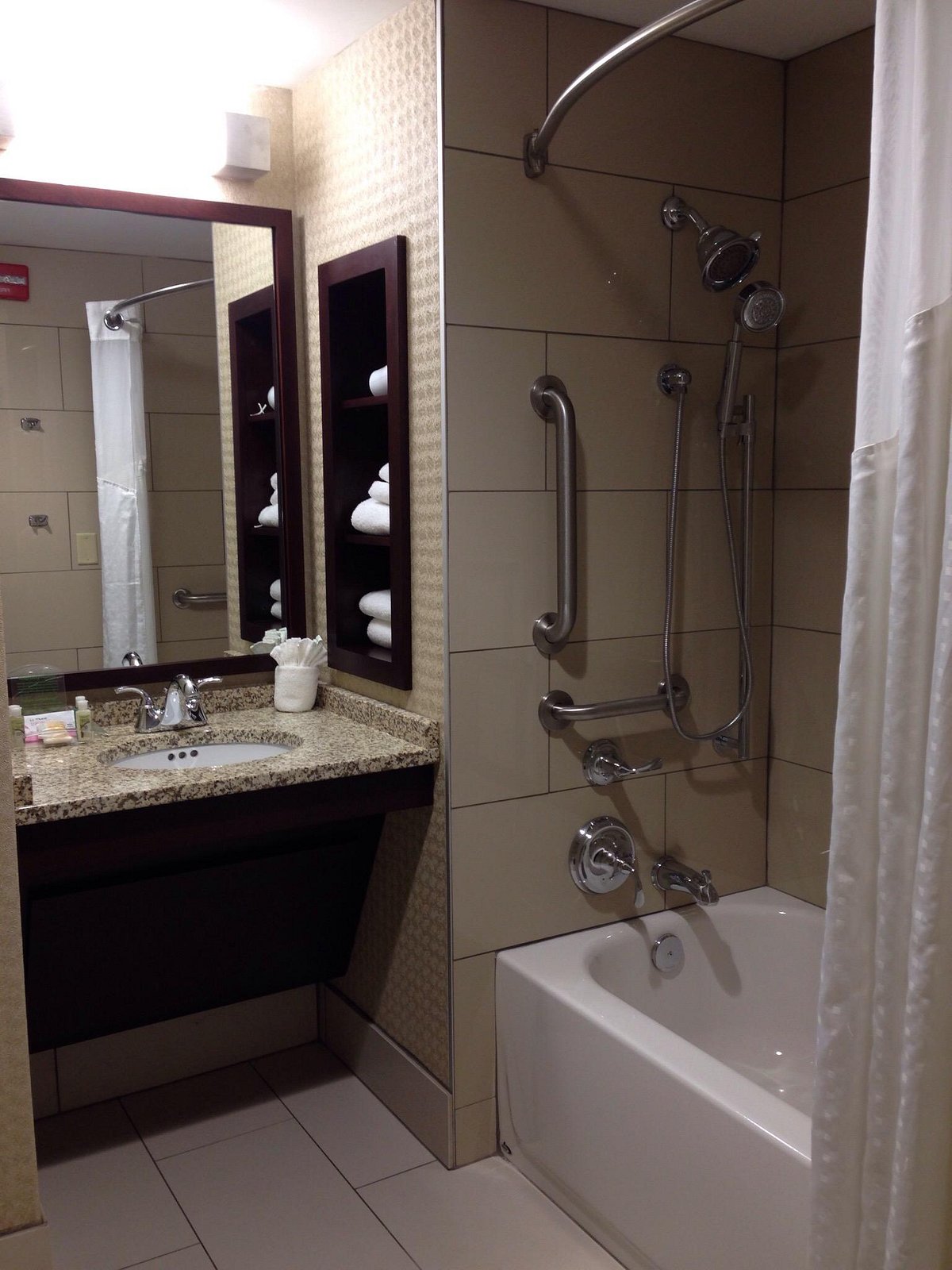 We enjoy the Embassy locations as they have interesting layouts in each hotel lobby. This location had a beautiful moss wall covered in living greenery, accentuated by two water features and a pooling fountain at the base. The fixtures and decor were very tidy. Our room was extremely cozy, there were no huge issues just small things like a missing towel hook and noticeable curling in the corners on the wallpapered bathroom, obviously moisture hangs around and it’s expected but worth noting. I noticed across many Hilton locations the grout of the bathroom tile is never it’s true color, and that’s really the only thing that bothered me. I feel like it’s not adequately deep cleaned on any schedule and the grout along the base of the wall is white, so I wonder if the grout in the floor is truly dirty. I feel like it’s something many hotels should keep on a schedule to maintain, especially at the prices charged. The staff were very helpful as well as informative, and our room was serviced nicely. We did not have any issues during our stay and plan to continue using Hilton locations.