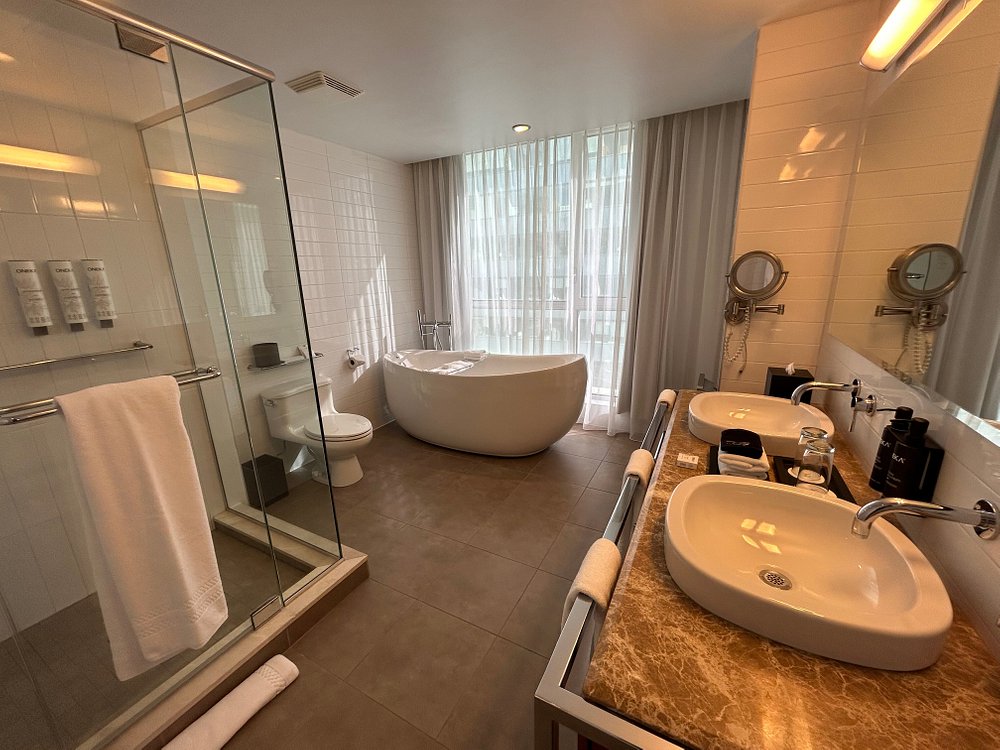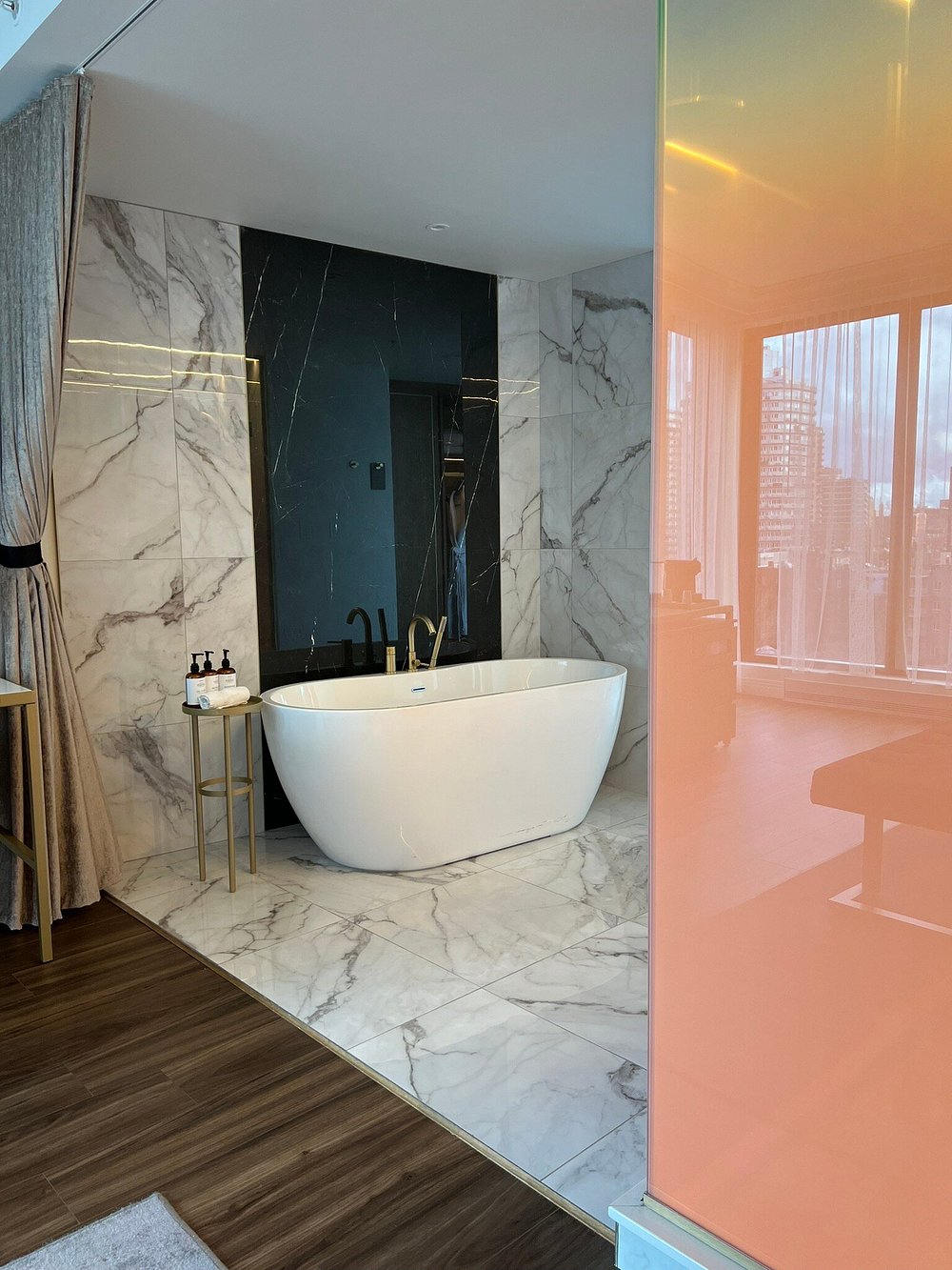 Came here towards the end of our Montreal trip to celebrate my fiancés 40th birthday. Upon checking in, we received an upgrade to our room since he is a diamond member which made us very happy! The service was exceptional, all of the staff were very friendly. The drinks at the bar were thoughtfully made and the lobby is gorgeous. This hotel is also in the best location. My only complaint was that our bathroom didn’t really “match” our room – it’s like they upgraded everything in the hotel expect the bathrooms. Would still gladly return the next time we are in Montreal.