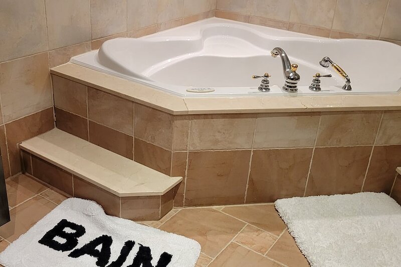 Are there hotels available with in-room jacuzzis located outside of downtown Montreal?