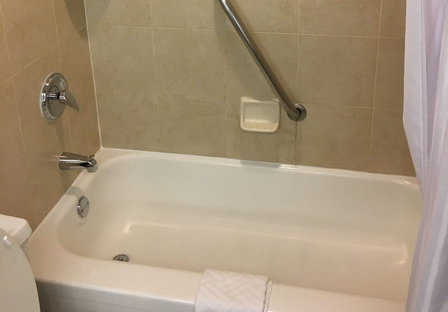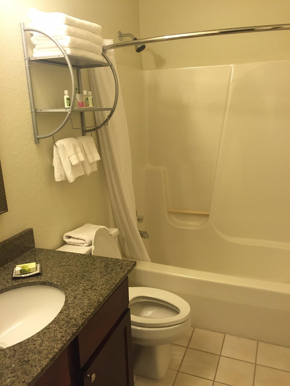 Room – 2 of 3 lamp bulbs were burnt out and their was no entry light at all so it was very dark when walking in. Visible stains on blankets, bathroom set up not accommodating for young kids, and lighting was terrible.