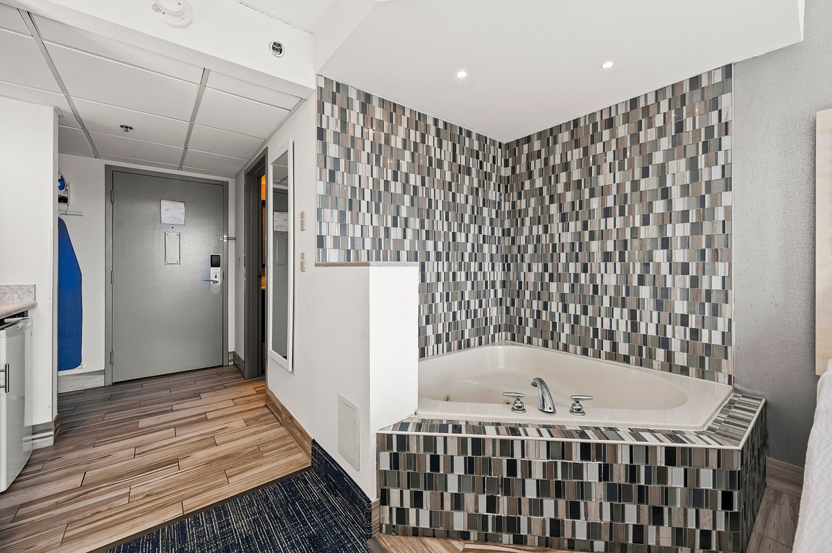 Inside the room we had a jucuzzi tub with a rainfall shower. We were unable to adjust the temperature of the shower head but it be temp would adjust the tub. I’m not sure what was going on. Also the shower head only had about 60% of the nozzles working. Showering wasn’t relaxing. The indoor pool was very cold as well. The location was great right on the beach but overall we wouldn’t recommend this place to friends and we most likely won’t return.