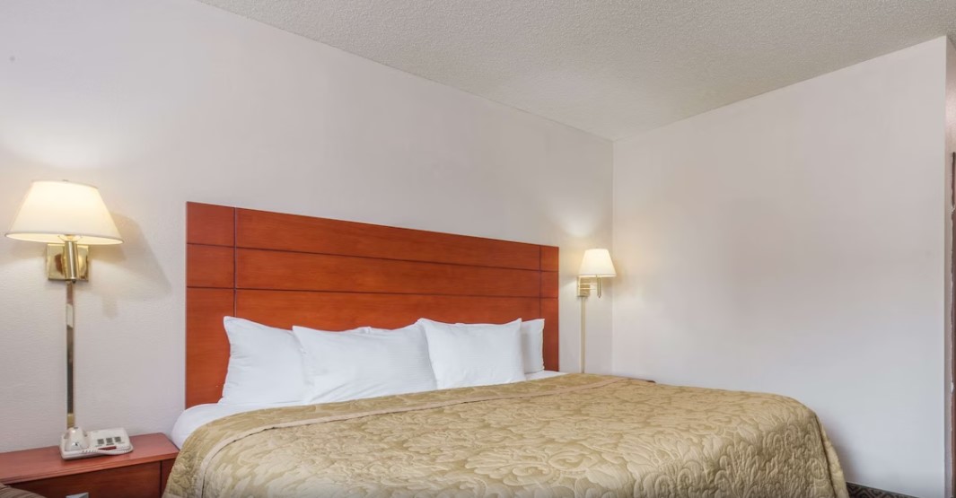 Now for the inside, I walked in and its under construction as well. The bathroom in my room wasn’t cleaned to well, it had strands of hair and all the mirrors were dirty, wasn’t wiped to good. The dresser draws kept coming open where they put a business card to hold it in placed but it kept coming open. Breakfast? was a joke, they only had powdered donuts, cinnamon rolls, a gallon of juice and milk, the cereal was in containers and had ants crawling on the counter. Checked out way before 11 and went to McDonald’s. You get what you pay for.