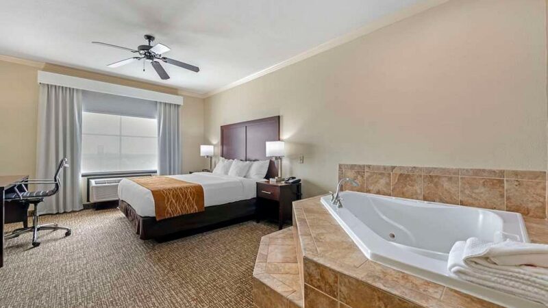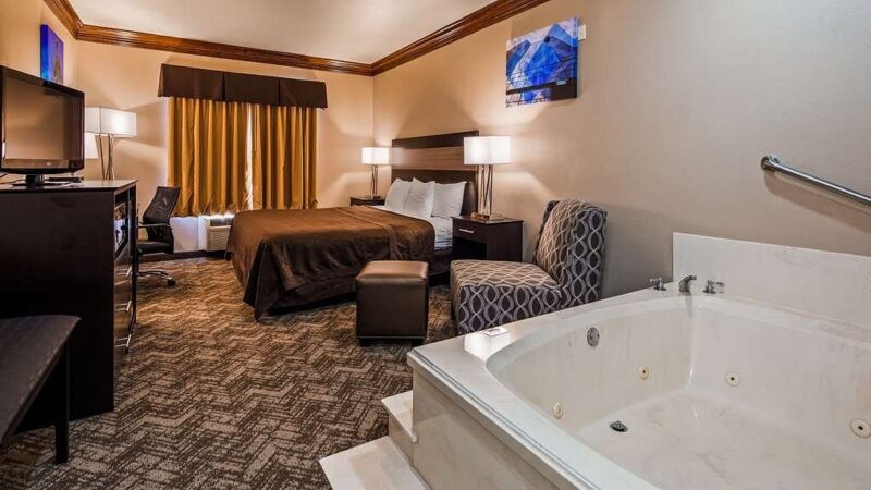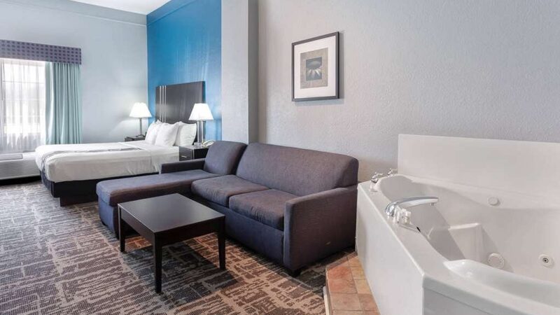If you’re looking for a romantic getaway in Texas, the Best Western Plus North Houston Inn & Suites stands out as a top choice, especially for couples who appreciate a cozy whirlpool tub. It’s highly rated by those seeking a romantic experience. Be sure to check out our complete list of romantic hotels featuring in-room Jacuzzis for even more options to elevate your stay.