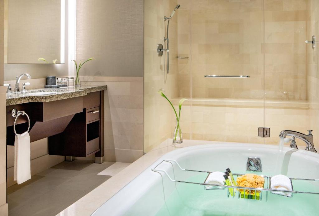 Luxury hotel featuring private jacuzzis, a pool, dining options, spa services, near South Station.