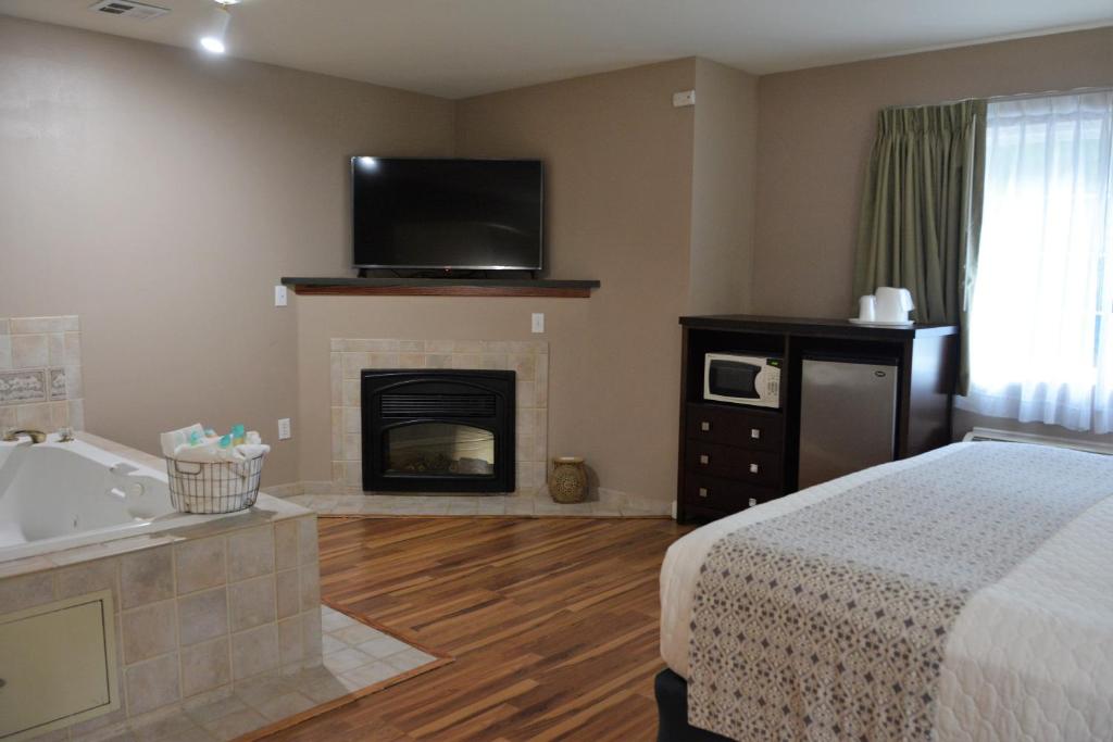 Charming lakeside hotel featuring spacious jacuzzi suites with king beds and complimentary breakfast, close to sights.