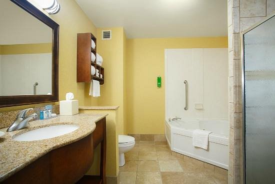 I was very pleasantly surprised how nice this hotel was. Our room was priced well, it included a sitting area (couch, chair, leg rest) a desk, and two queen beds. Everything was very clean and comfortable. And the breakfast was good (except for the fake eggs). The conference room looks nice; the gym is limited, but clean; and the pool is heated and indoors! Lots of options on places to eat and things to do within 5 minutes drive.