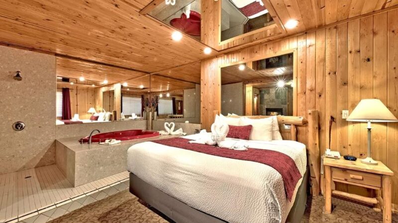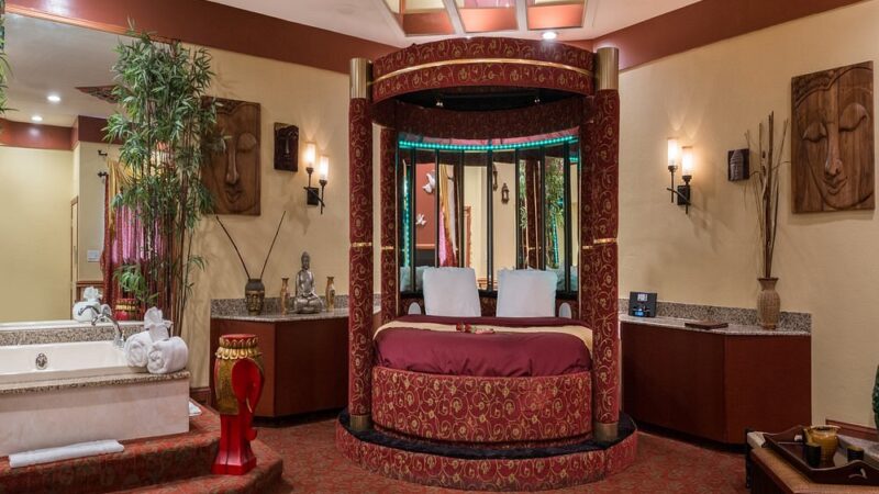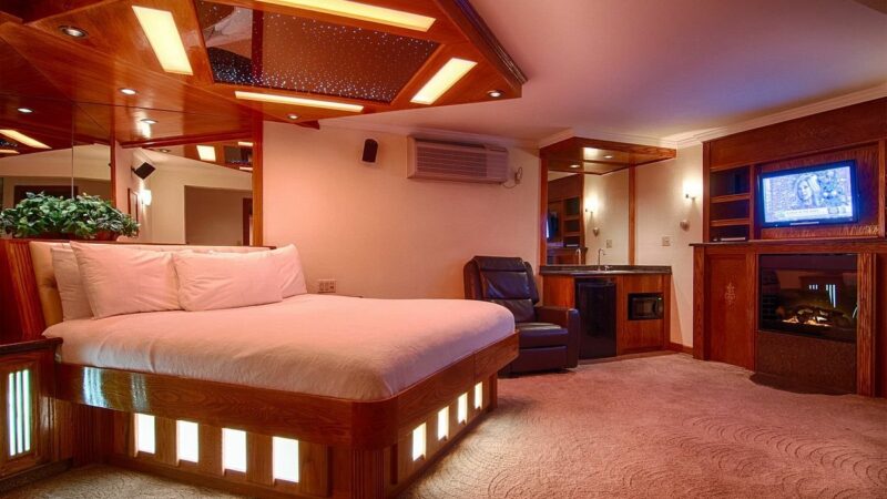 Rated by couples, the Champagne Lodge and Luxury Suites in Willowbrook, Illinois, it the best romantic hotel with mirror on ceiling in the USA. You can also see our full list of romantic hotels with mirrors on ceiling in the USA.