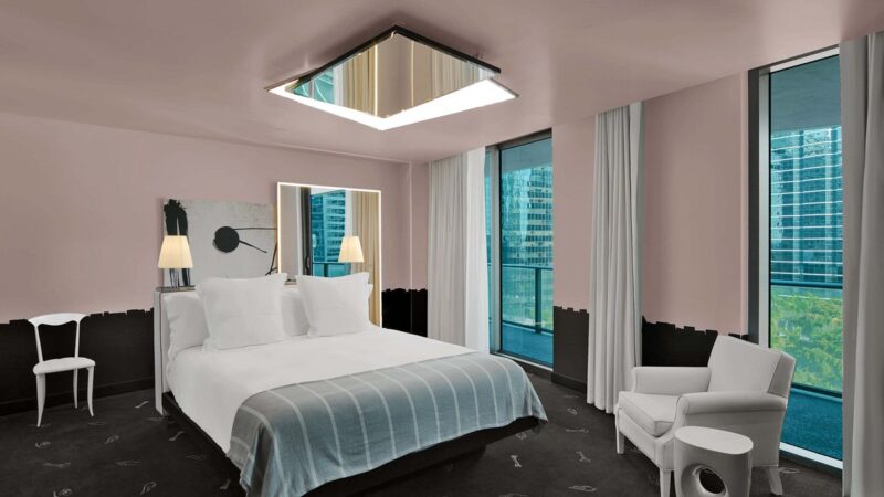 Moxy NYC East Village in New York is currently the best rated hotel with mirror on ceiling in the USA. You can see our full list of best hotels with mirror on ceiling in the USA.