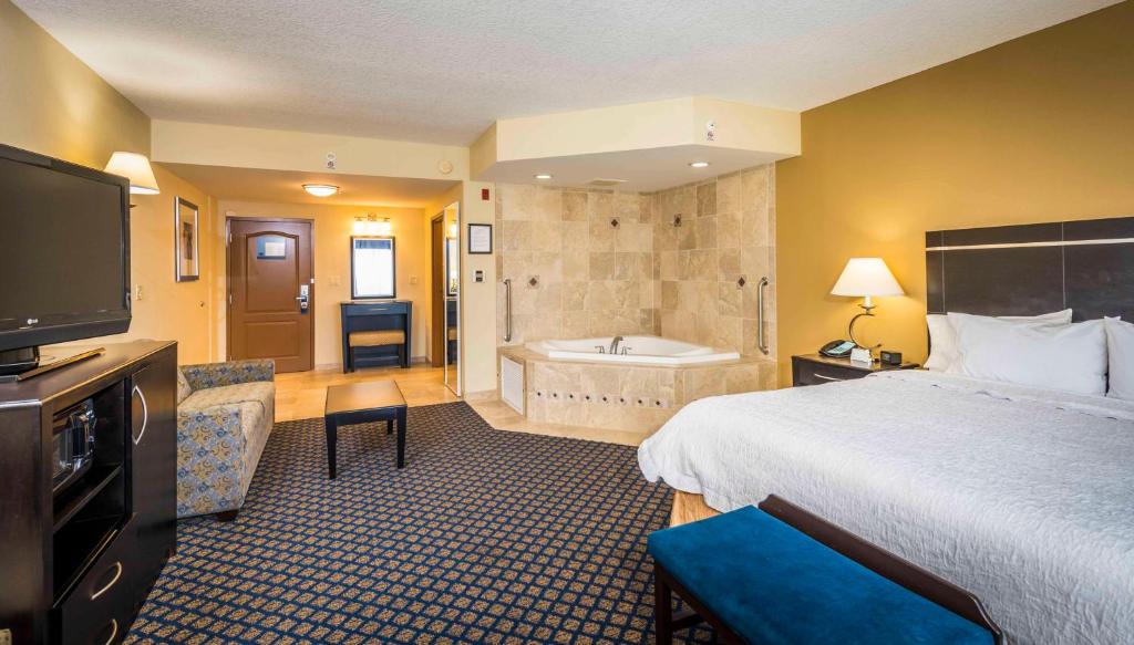 Are there hotels in Jacksonville that offer rooms with a Jacuzzi and are close to major attractions?