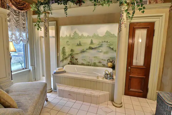 Six-room 19th-century mansion with private hot tubs, fireplaces and patio or balcony in Lafayette, IN.