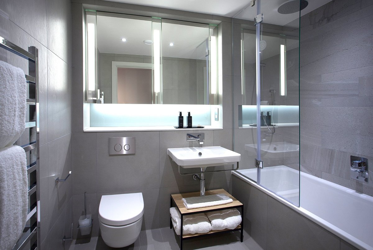 Chic hotel suites featuring self-catering kitchens, in-room jacuzzis, rainfall showers, and city vistas in Manchester.
