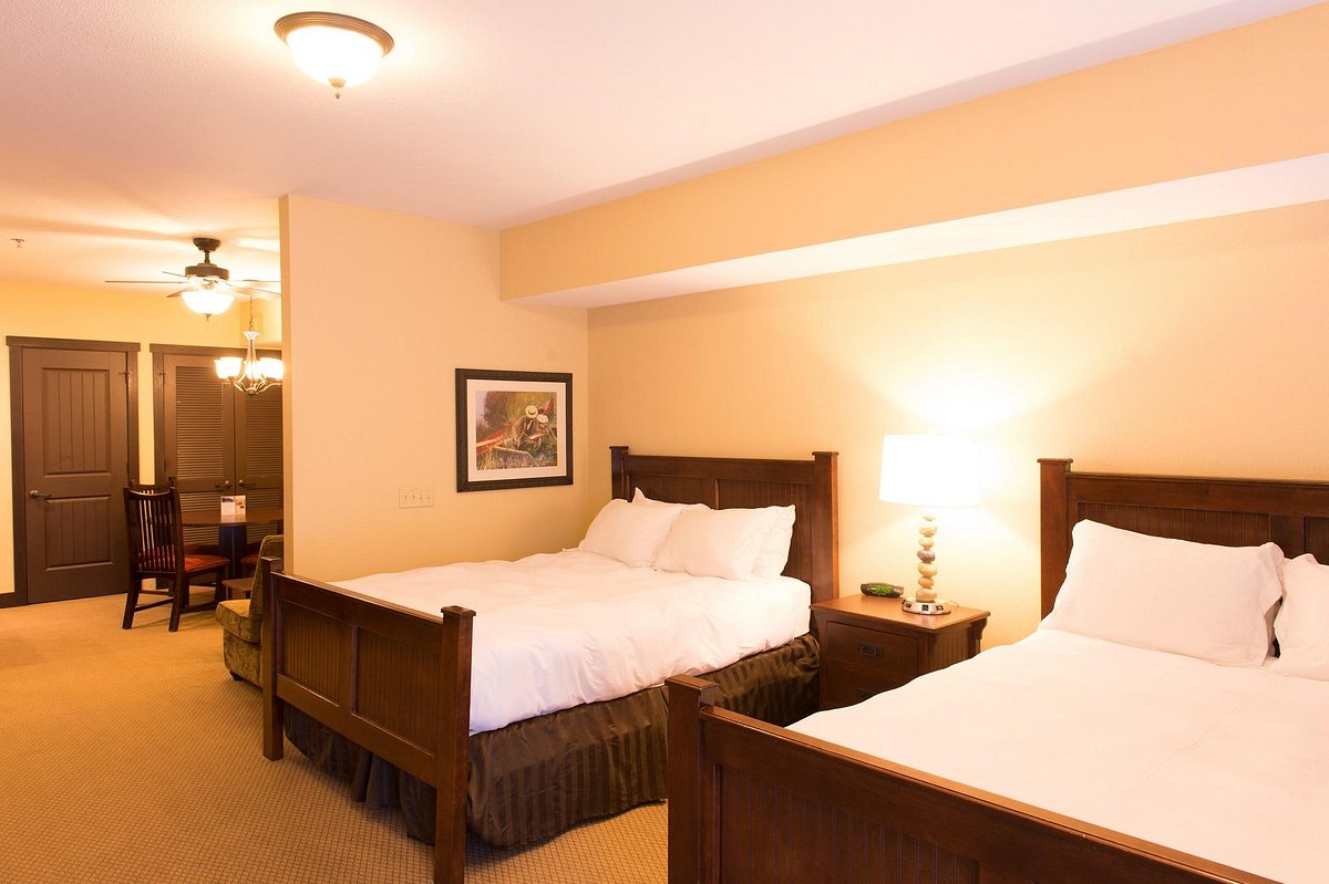 The location was great, close to State parks, rustic inn, and other places to stop. Little further out of 2 harbors, it was great. I really do believe they need to remove fitness room from amenities. The rooms were clean and well kept. Liked the layout of 1 bedroom. We had 2 beds one was in separate room with its own vanity and sink which was great. Bathroom had places to hang towels which we found annissue at superior shores. It was great place, would stay there again.