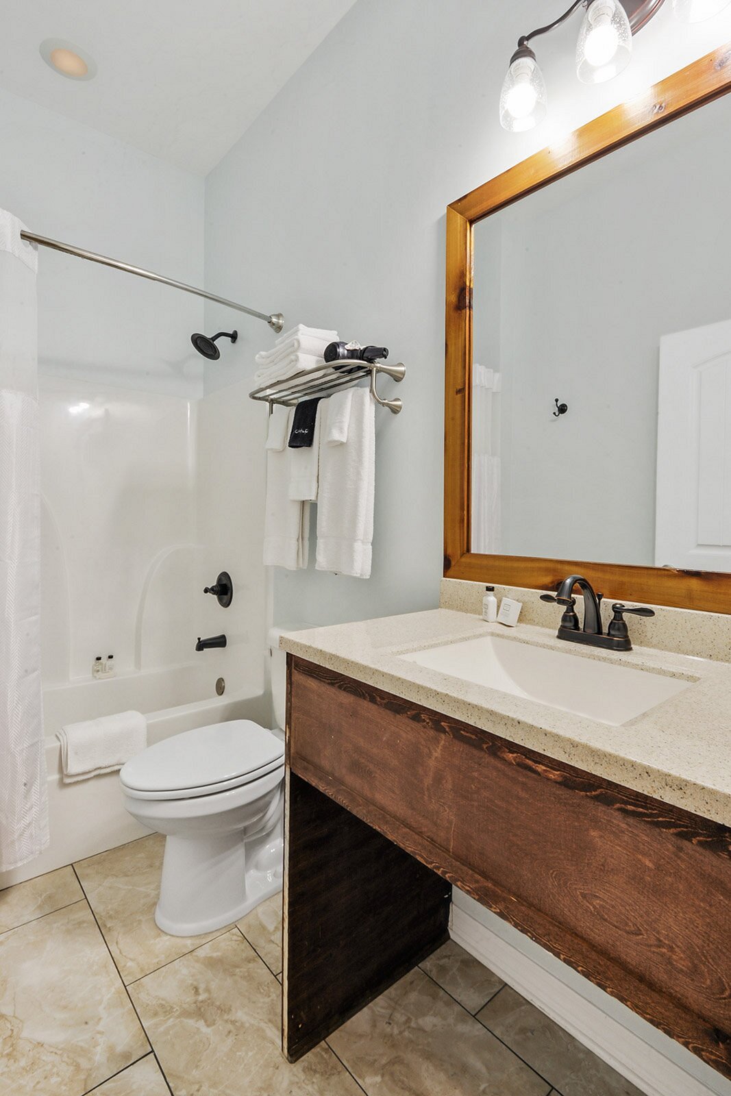 the beds were comfortable and the rooms were spacious. The bathroom was clean and stocked with fresh towels and washcloths. The shower was strong and provided all the hot water you could want.