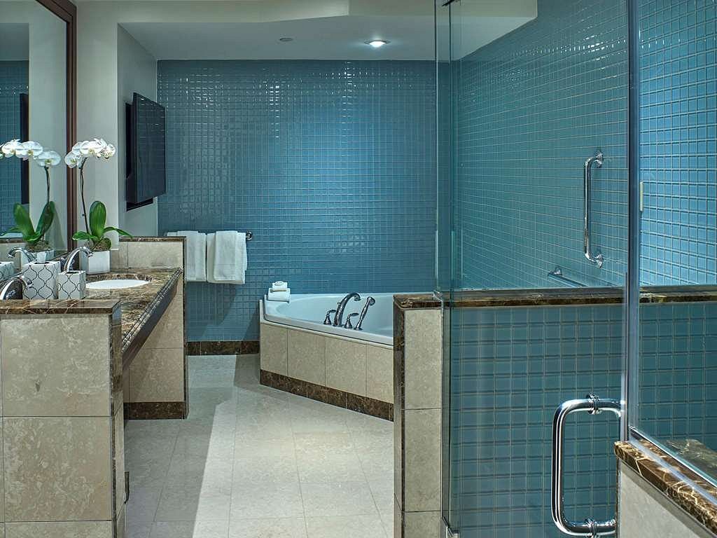 Some suites offer classic claw-foot bathtubs, providing a serene escape from the lively casino and arena.