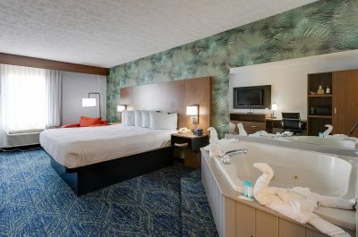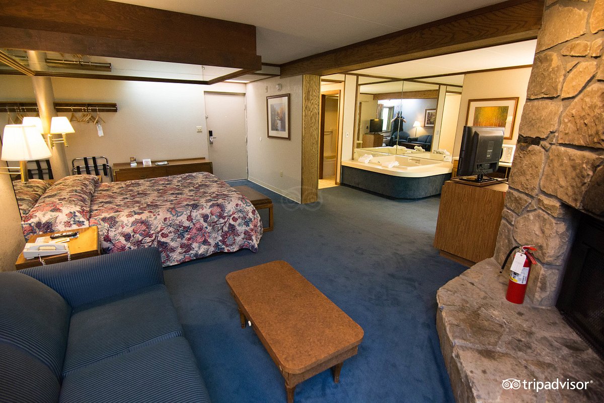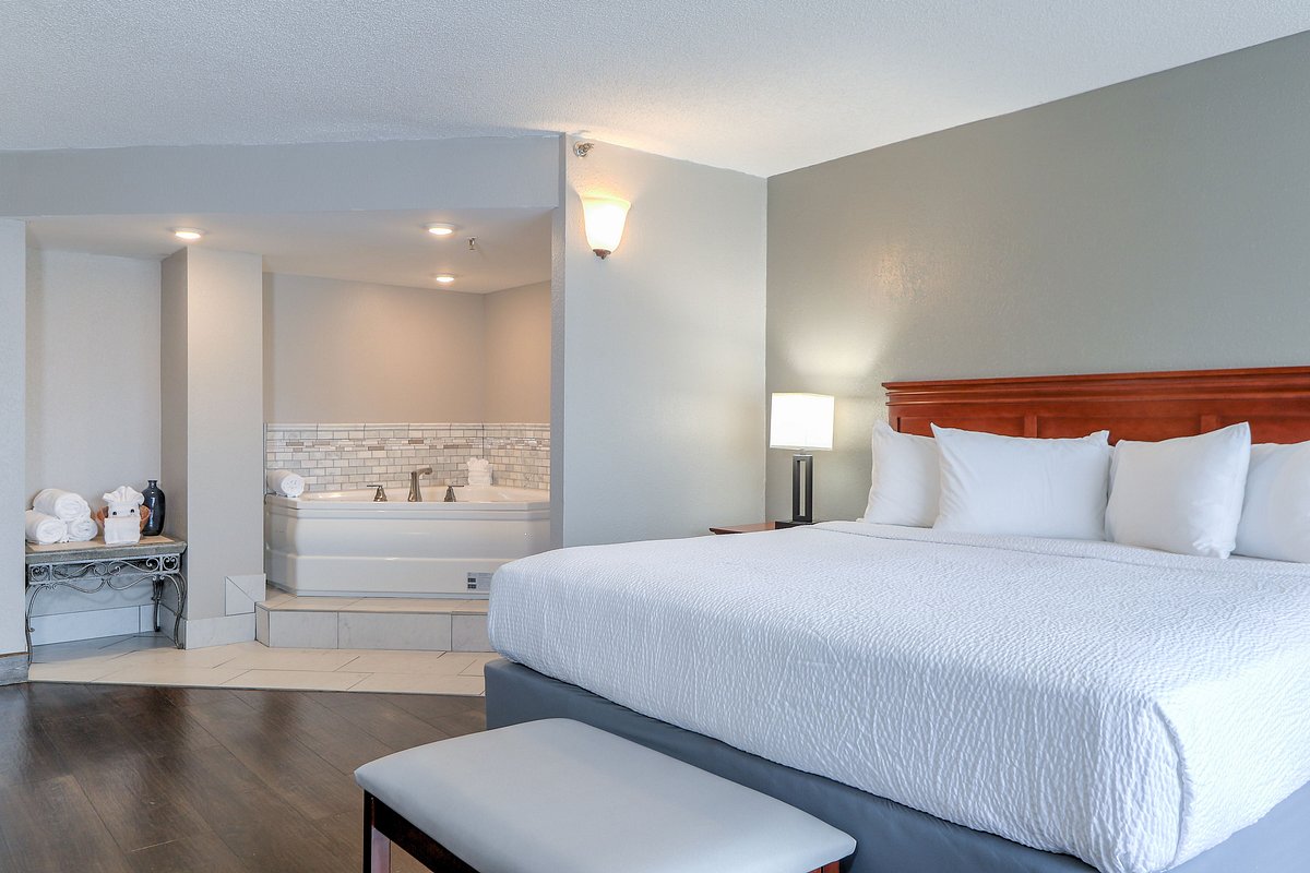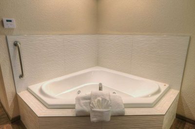 Alongside a relaxing hot tub, many rooms are equipped with conveniences like complimentary WiFi, a mini-fridge, a microwave, a coffee/tea maker, a flat-screen TV, and even a private balcony for your enjoyment. You can also take advantage of hotel-wide features such as a swimming pool, a fitness center, free breakfast, and convenient onsite parking. These amenities make your stay comfortable and enjoyable, catering to all your needs.