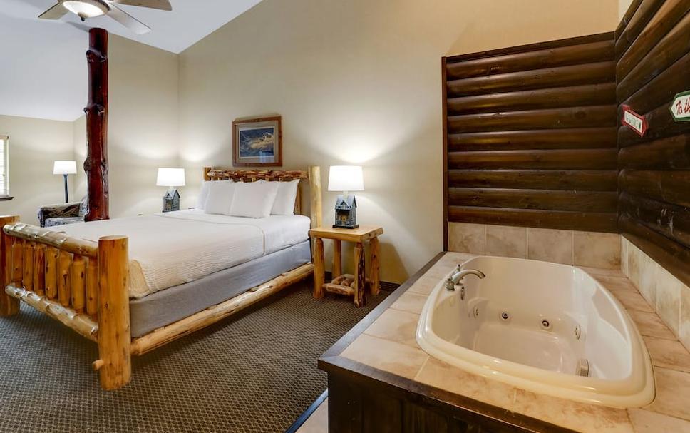 Booked this place on a whim, but turned out to be one of the nicest lodge looking places we ever stayed at. We came with our kids and they had a blast swimming in the pool. The pool looked so whimsical and the indoor looks like your swimming somewhere in the wilderness. The neat feature was that it goes outside and you can swim outdoor too. Loved the hot tubas well! Our room was absolutely HUGE, we had a king sized bed and a bunk tha6 was a full with a twin on top plus a fold out couch! As a family of 6, we were super comfortable there. It was very spacious!!! Absolutely beautiful place to stay if you love the lodge feeling, we were pleasantly surprised! Will be back!