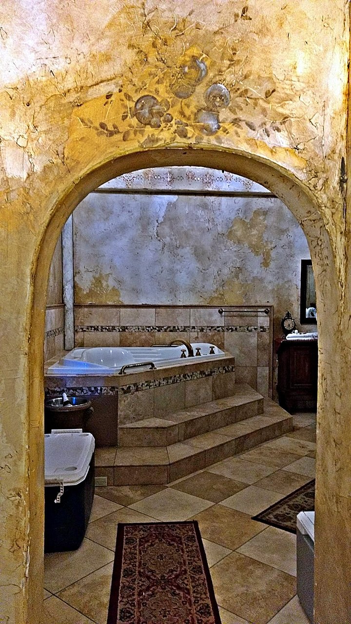 Beautiful place for a getaway. We stayed in the library. There was a hidden entrance to the bathroom and there was a good size tub up a spiral staircase. They make breakfast in front of you and it is so good.
