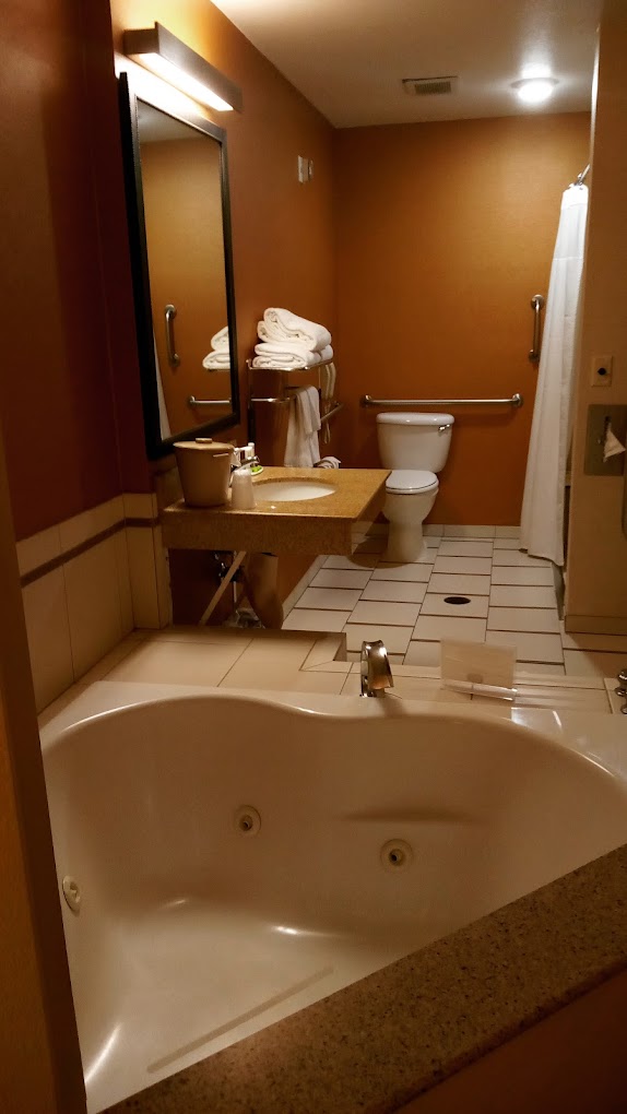Room was spacious and well maintained. We had a pet friendly room with no carpet although we did not have a pet. First floor room and we could hear the people in room above walking and dog next door barking. Breakfast included and well stocked. Nothing justifies the very high price of the room. Hot tub out of commission our last day there. Recommend that you look elsewhere for a less expensive hotel.