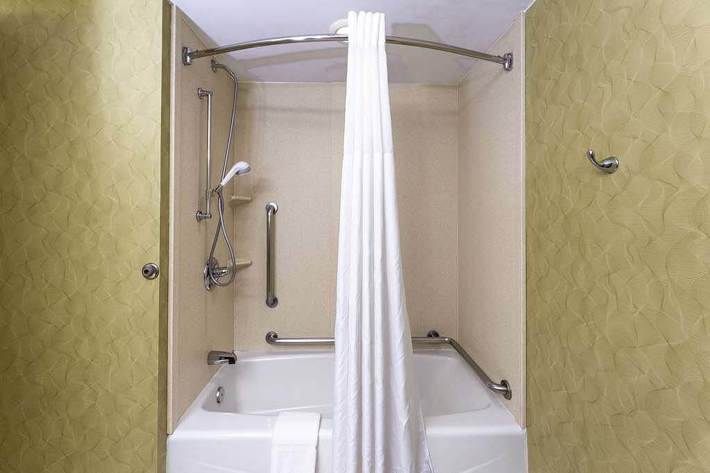 Coworker recommended hotel specifically for the pool/water slides! The room was clean -and I am picky. But some of the little things were missing (a TV channel guide, no spare roll of toilet paper, only enough towels for two people). It’s a great room for a traveler. Breakfast was hot, plentiful and the waffle station was clean (waffle stations get messy really quick if not maintained). I get the feeling they are short of staff, but the staff is trying terribly hard. So the pool – the kids had a great time! The slides were great fun. There were plenty of towels, but they were very small. Maybe bring your own towels. It looked very clean, except the stairs to the slides.